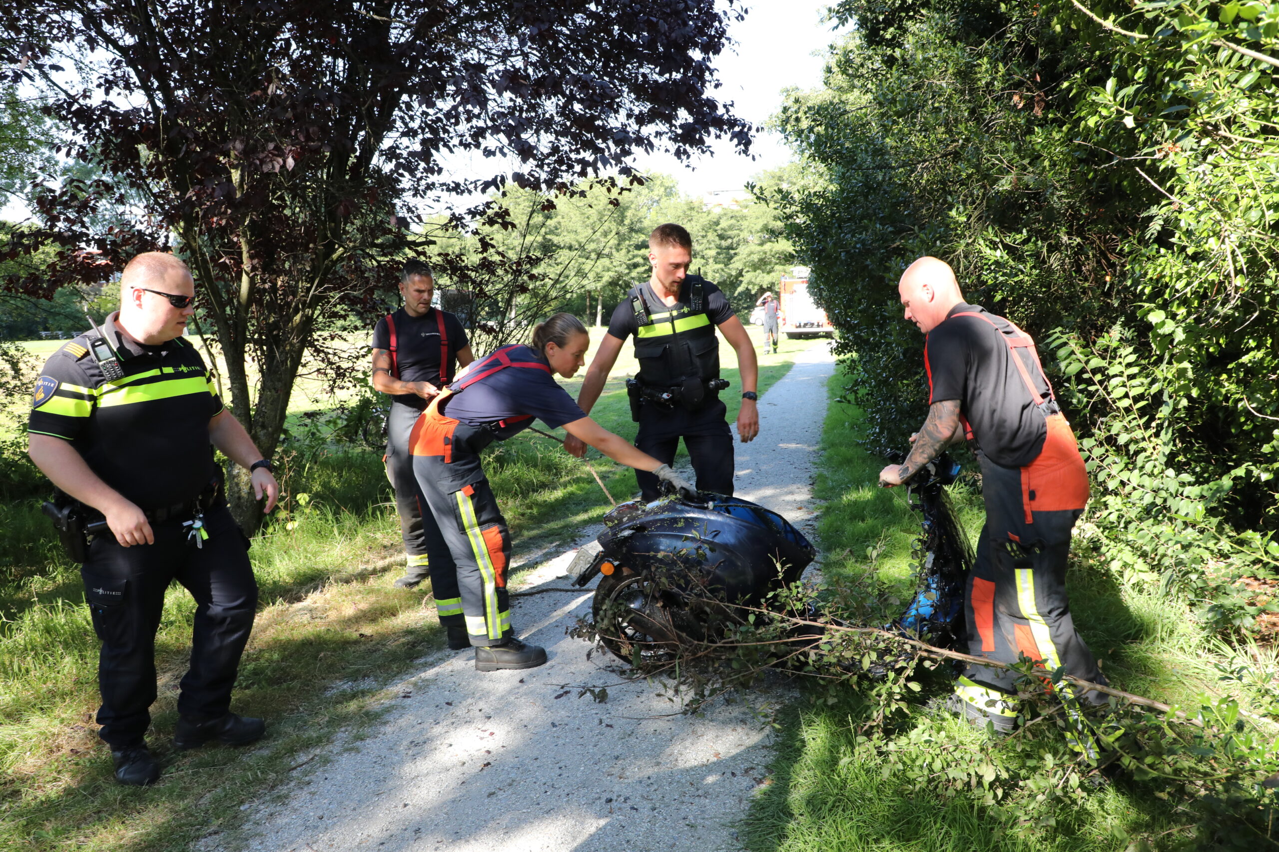 Achter de Leidse tennisclub Roomburg heeft de brandweer vanmiddag een gestolen scooter uit een slootje gehaald. Het voertuig, een snorscooter, was compleet gestript. De melding kwam van een voorbijganger die de scooter in het water zag liggen. Wie de rechtmatige eigenaar is, wordt onderzocht.