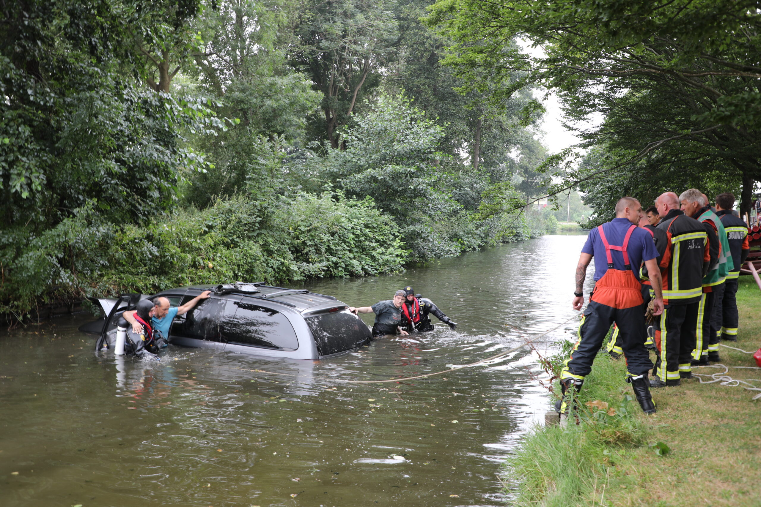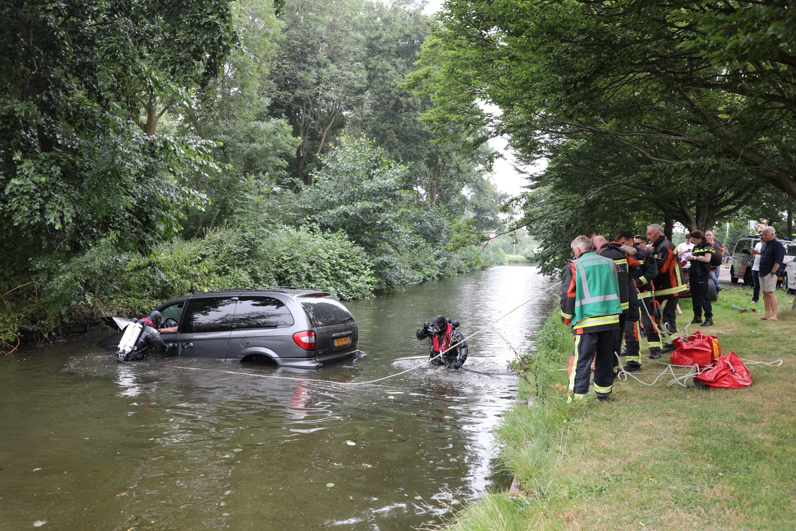 Hulpdiensten zijn vanmiddag massaal uitgerukt voor een auto die in een sloot terecht gekomen is naast de Van der Marckstraat in Leiderdorp. Een van de inzittenden zou onwel zijn geworden. Beide personen zijn in het voertuig blijven zitten tot de komst van het duikteam van de brandweer.