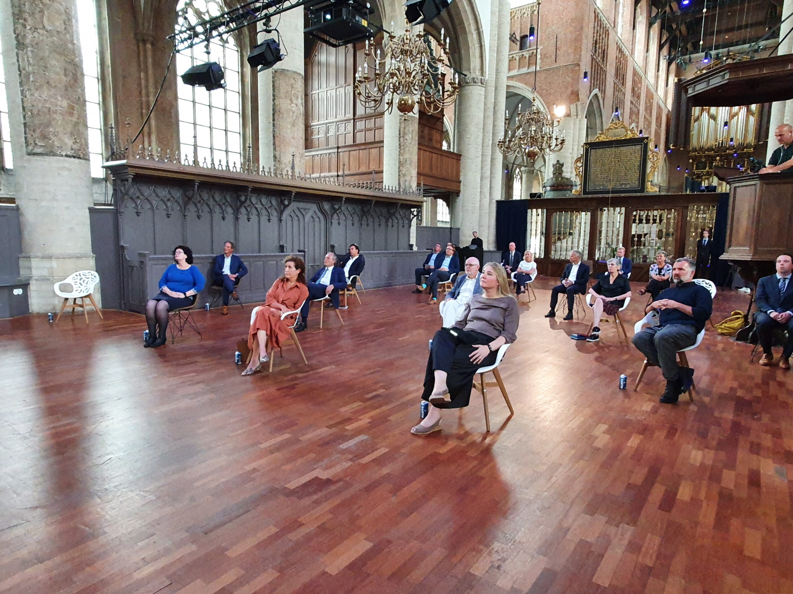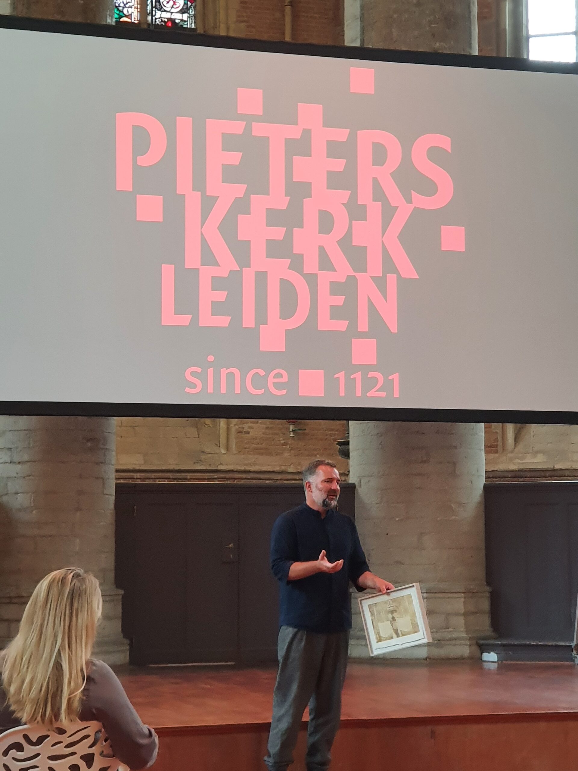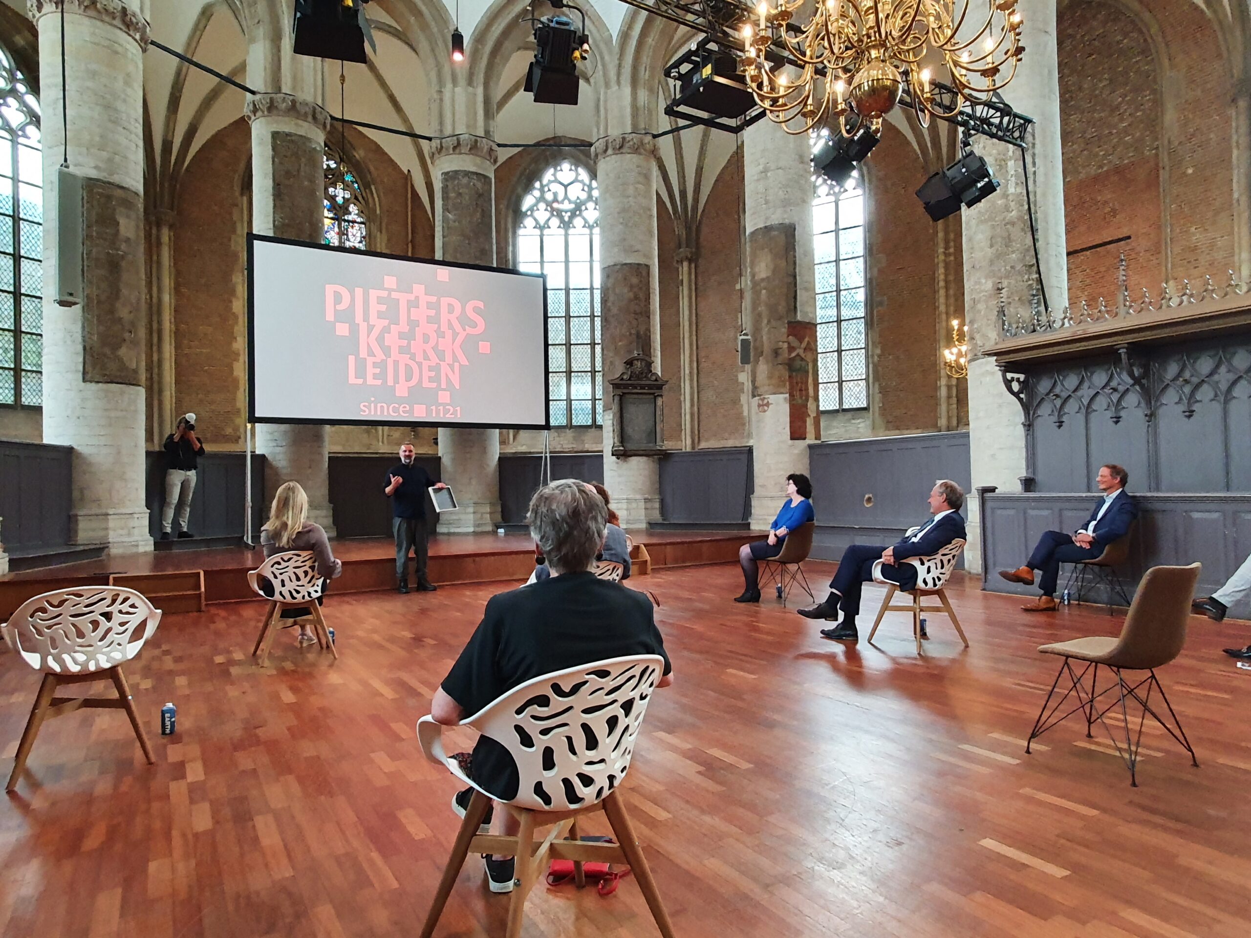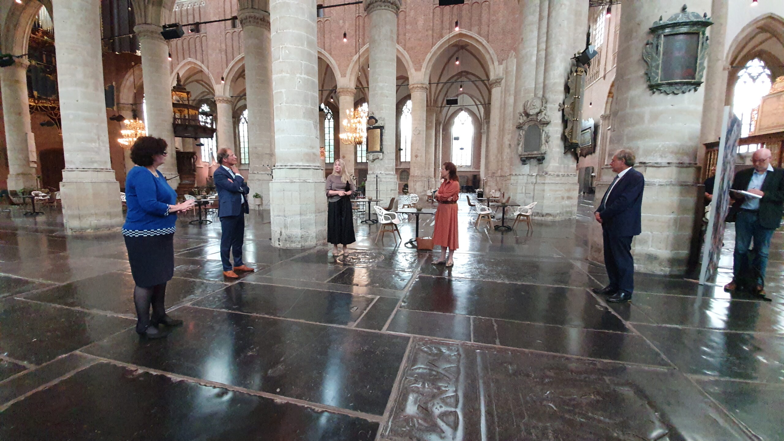 Chris de Waard sprak in de Pieterskerk met minister Ingrid van Engelshoven en directeur-bestuurder Frieke Hurkmans.
