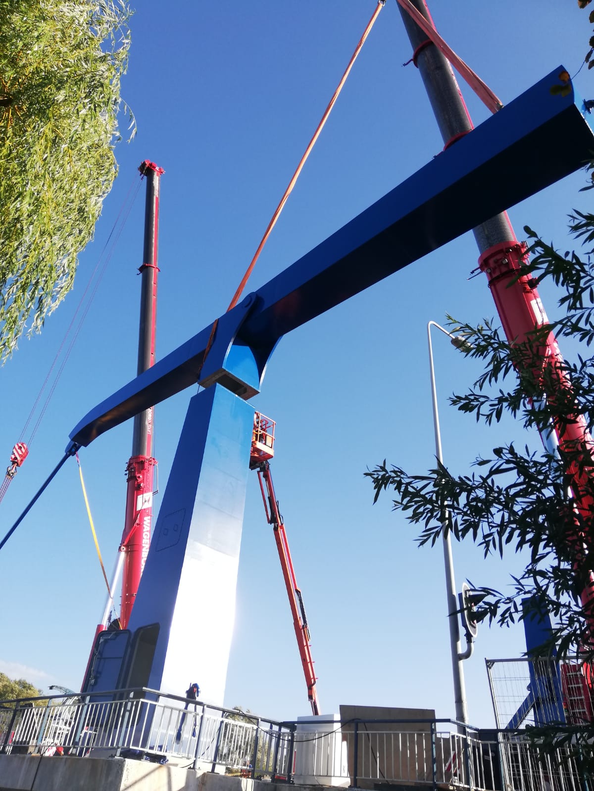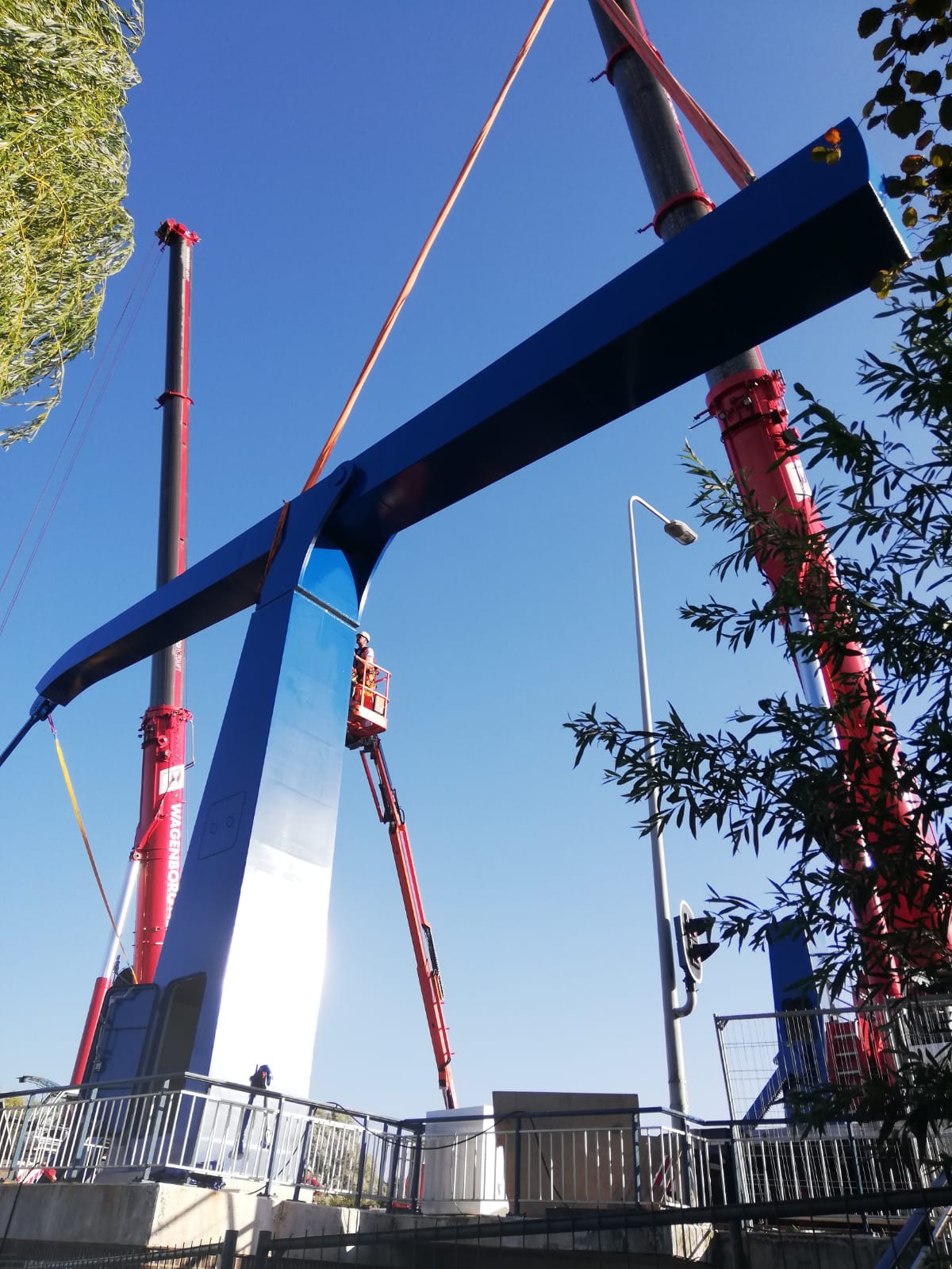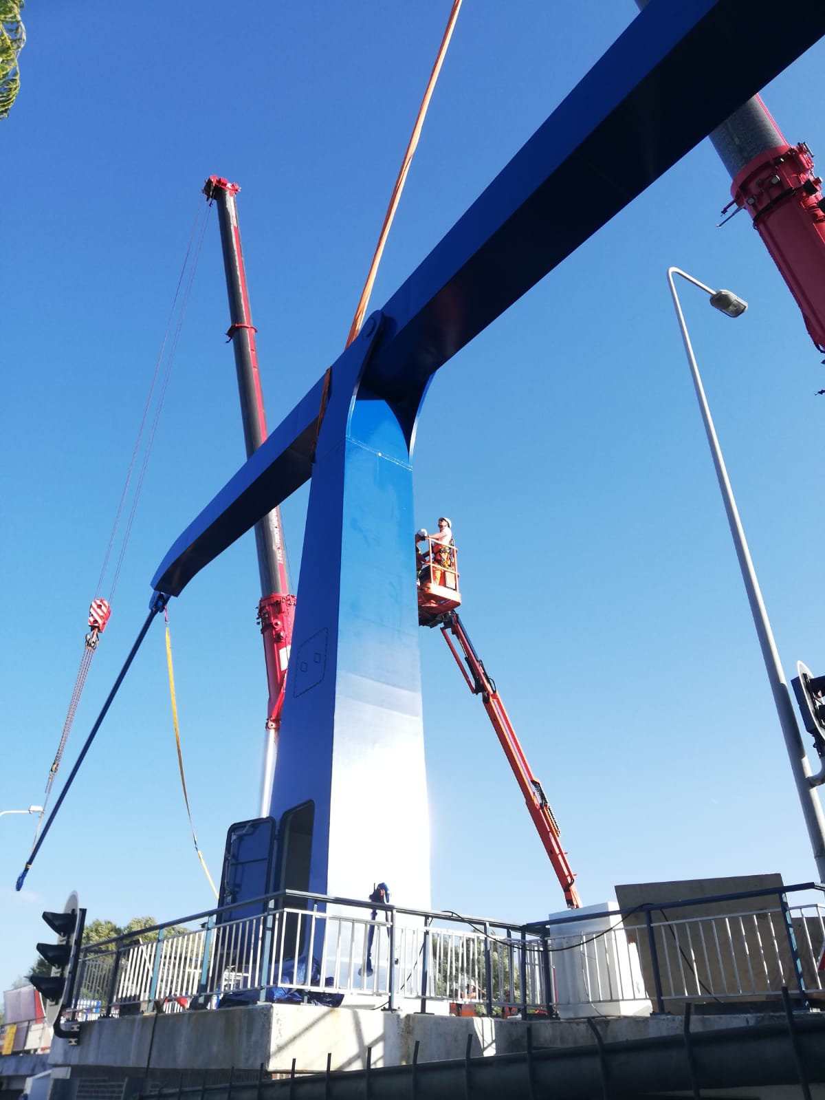 Tijdens de werkzaamheden bij de Churchillbrug is vrijdag een belangrijke stap gezet. Het nieuwe val – het beweegbare gedeelte – van de brug is op zijn plek gehesen.