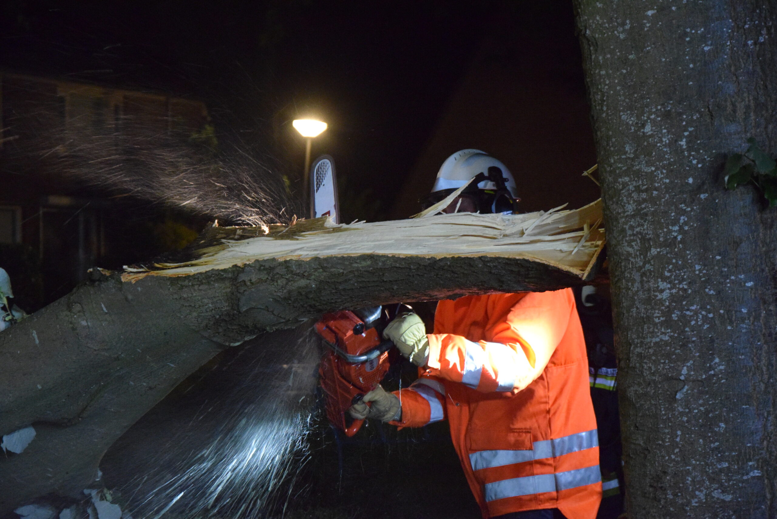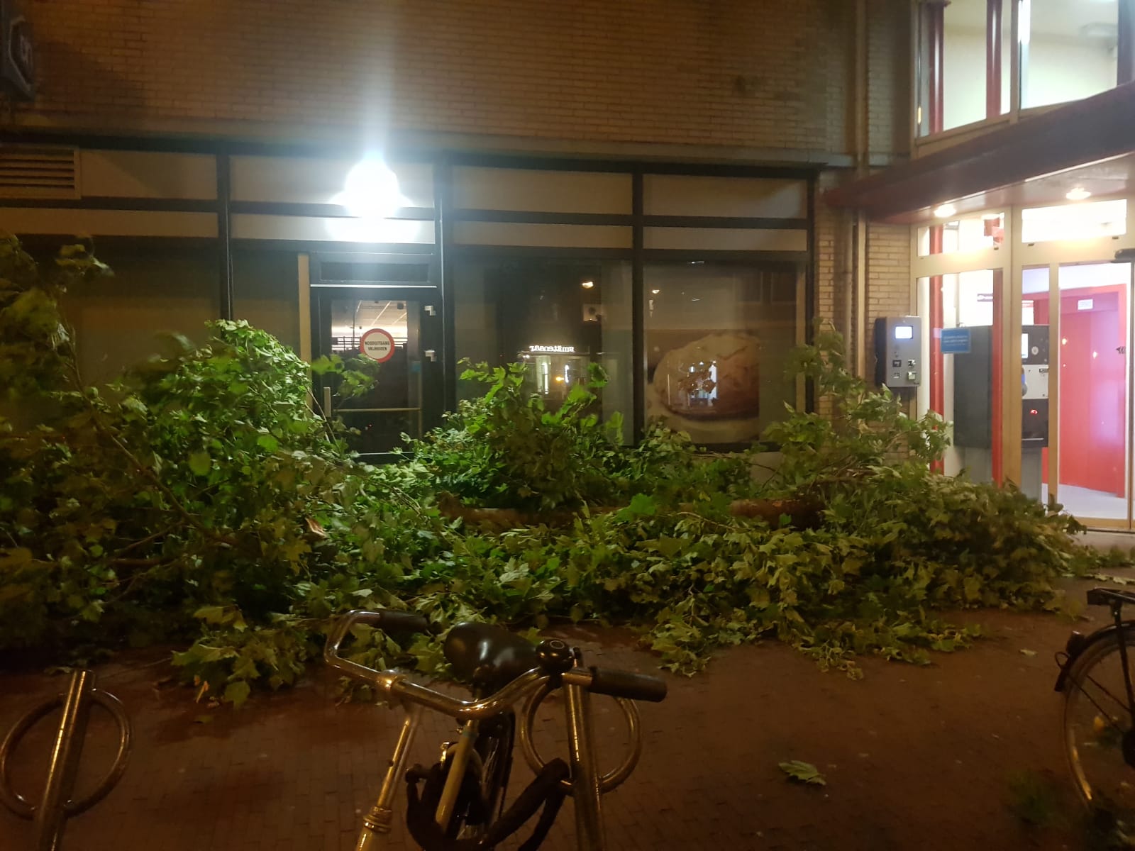 Ook in de Lindelaan in Zoeterwoude viel een boom ten prooi aan de storm. Een flink deel van een boom brak af en kwam tussen de geparkeerde auto’s terecht. Brandweer heeft het afgebroken deel afgezaagd en de takken die op en tegen de auto’s lagen weggehaald. Het was afgelopen nacht nog niet duidelijk of er sprake is van schade aan de voertuigen.