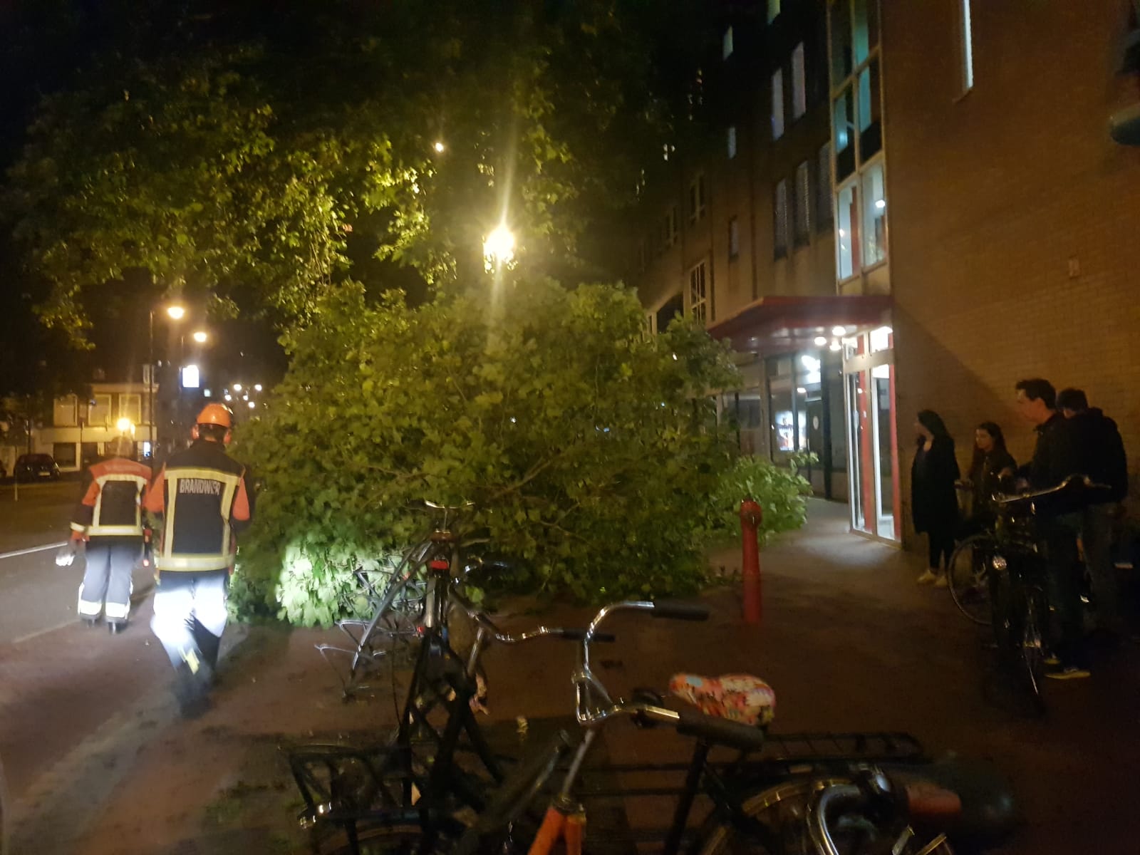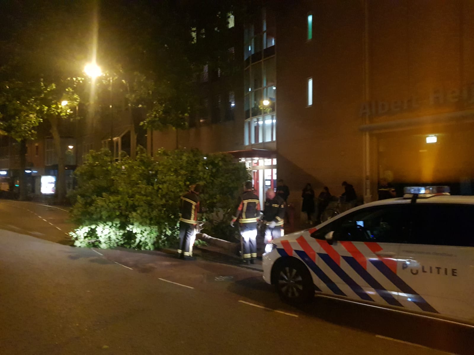 Op de Hooigracht is dinsdagavond rond 23.00 uur een boom omgewaaid. Dat gebeurde ter hoogte van de Albert Heijn supermarkt. Ook op andere plekken in de Leidse regio hield de harde wind huis onder het groen. Zo brak op de Hoge Rijndijk een grote tak van een boom.