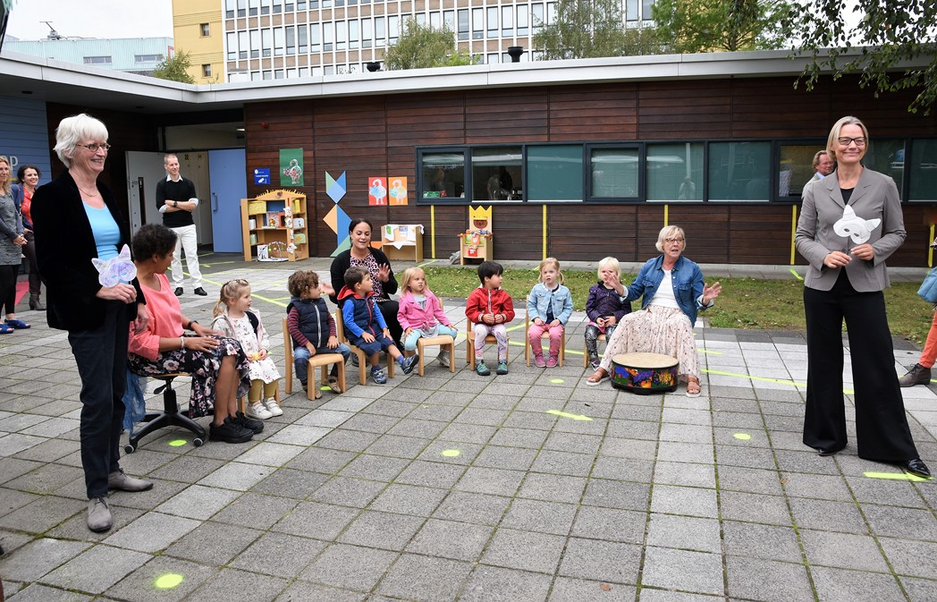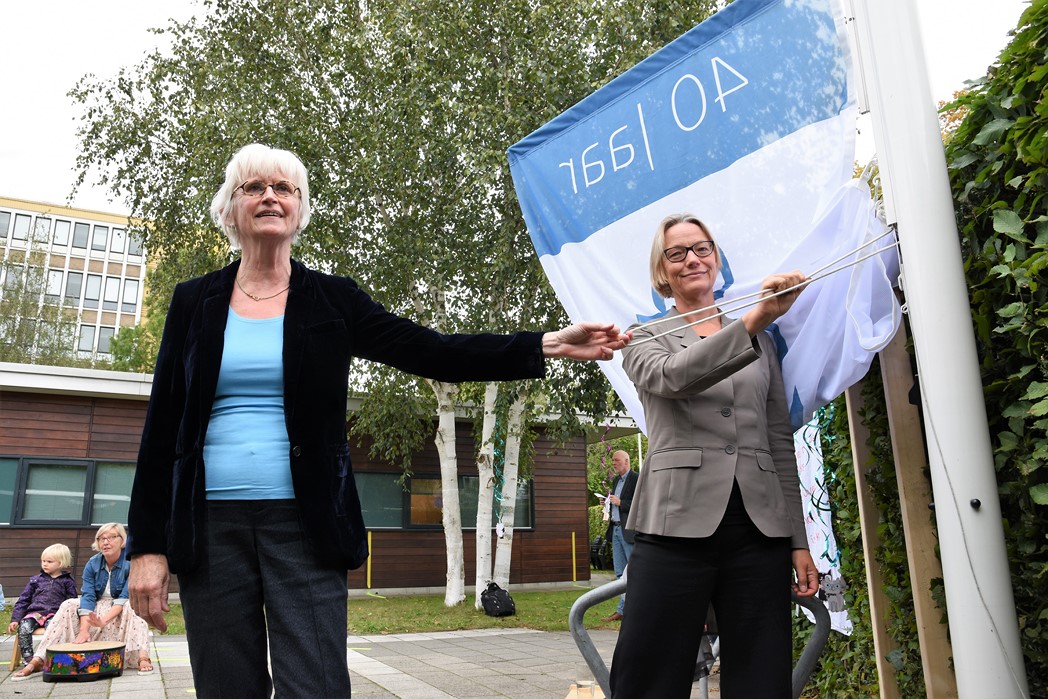 Een bescheiden feestje op kinderdagverblijf de Kattekop ter ere van de veertigste verjaardag. In 1980 was de Kattekop de derde kinderopvang in Leiden. En broodnodig, zo vertelt directeur Tilly Pannebakker. Vice-rector magnificus Hester Bijl, die de vlag kwam hijsen, is trots op de Kattekop en benadrukt dat kinderopvang nog steeds een belangrijke voorziening is. “Op naar de volgende veertig jaar.”