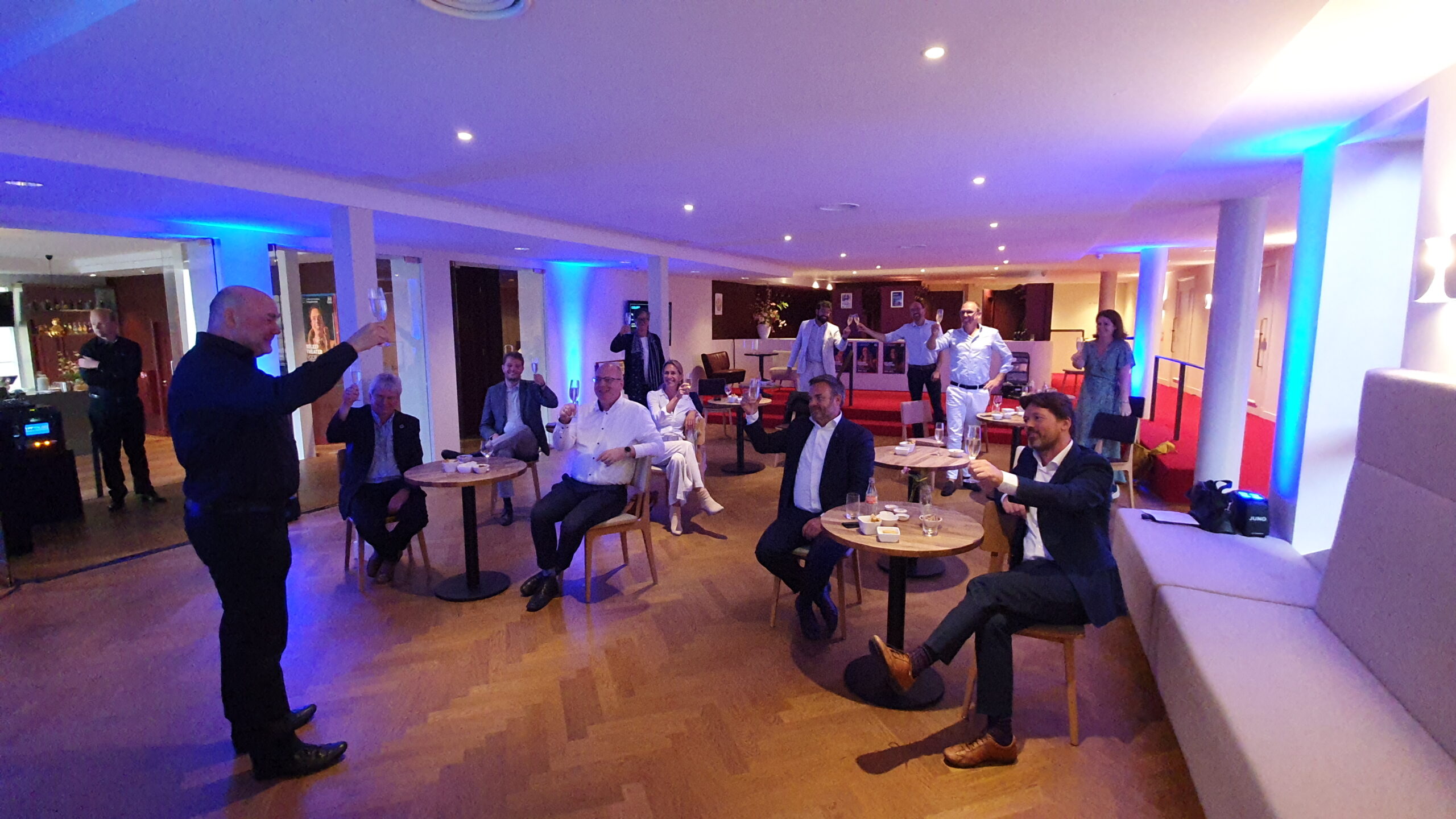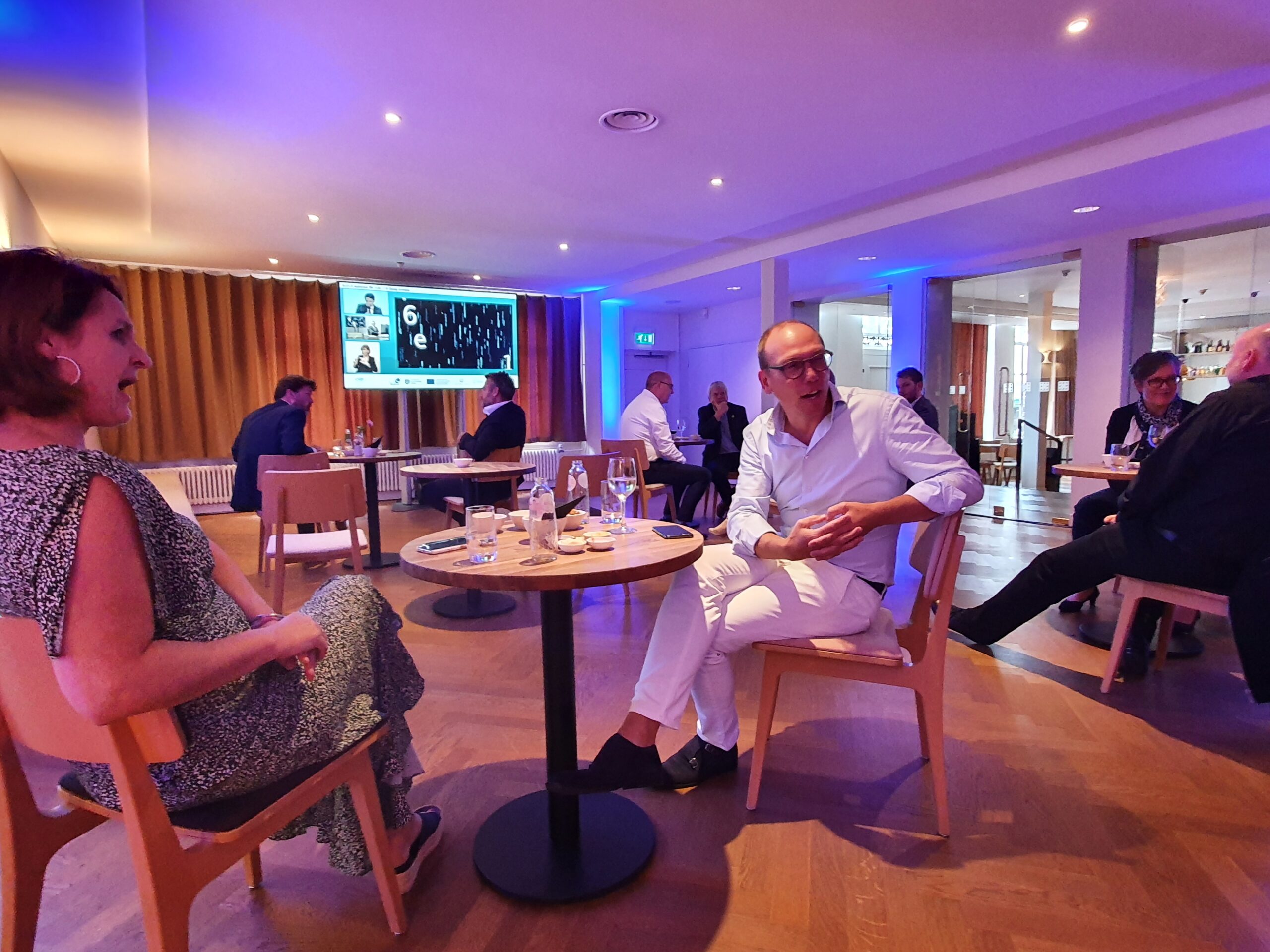 Verschillende stakeholders verzamelden zich zondagmiddag in de foyer van de Leidse Schouwburg, waar de overdrachtsceremonie op groot scherm werd gevolgd. Aansluitend hieven de aanwezigen het glas en blikte Lucien Geelhoed vooruit op 2022, waarin Leiden zich dus een jaar lang Europese stad van de wetenschap mag noemen. Geelhoed is als intendant verantwoordelijk voor het inhoudelijke programma en heeft het tot zijn taak gemaakt om de inwoners van de Leidse regio zoveel mogelijk deelgenoot te maken van het jaar. Dat gebeurt door een jaar lang elke dag een activiteit te organiseren in een van de 101 buurten die zijn geïdentificeerd in Leiden en de buurgemeenten.