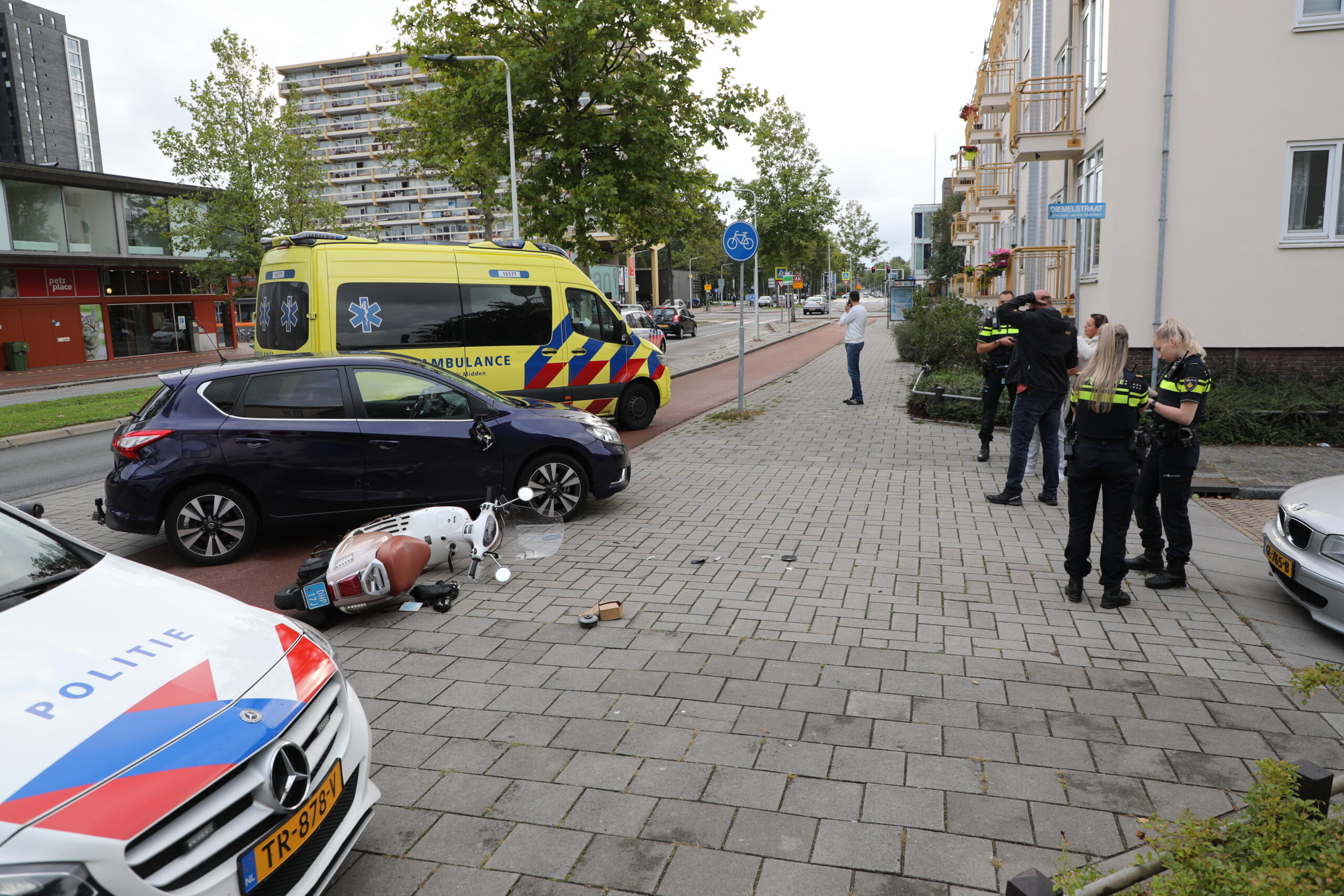 Een scooterrijdster is vanavond rond 18.30 uur op de Vijf Meilaan tegen een auto aangereden. De automobilist wilde vanaf de Vijf Meilaan afslaan richting de Diemelstraat en zag daarbij de scooter over het hoofd.