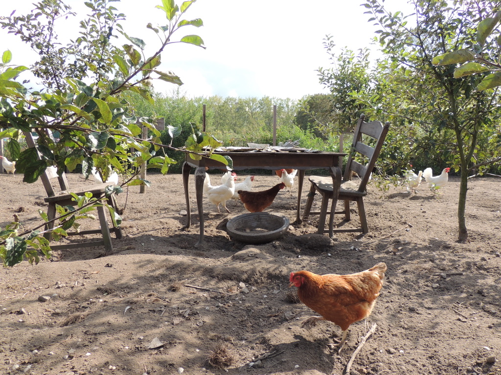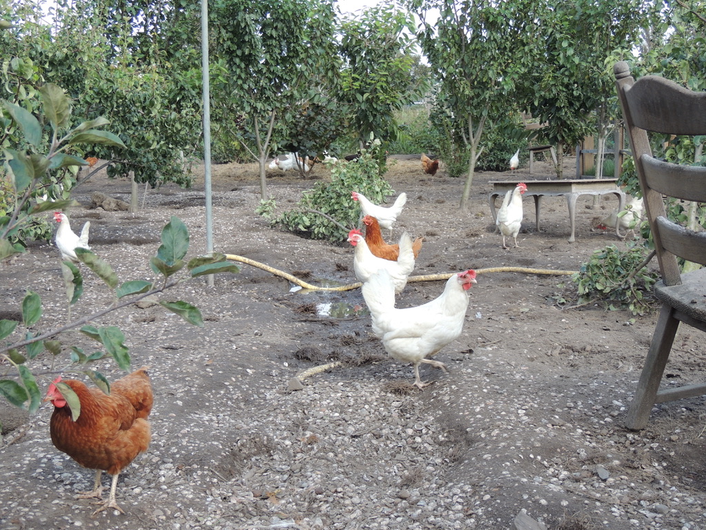 De Ecotuin wordt helemaal met de hand bewerkt en zonder kunstmatige middelen. Het is eigenlijk helemaal biologisch, maar helaas zonder het keurmerk. De kippen krijgen ook biologisch voer en de restjes uit de tuin die niet meer verkocht kunnen worden. Met 170 delen ze 1200 vierkante meter. Tussen de appel- en perenboompjes. De dieren zitten in een waar kippenparadijs en dat proef je terug in de eieren, aldus Heemskerk. Maar dan moet je er wel vroeg bij zijn in de winkel op donderdag. “We verkopen ze sneller dan dat we ze kunnen rapen.”