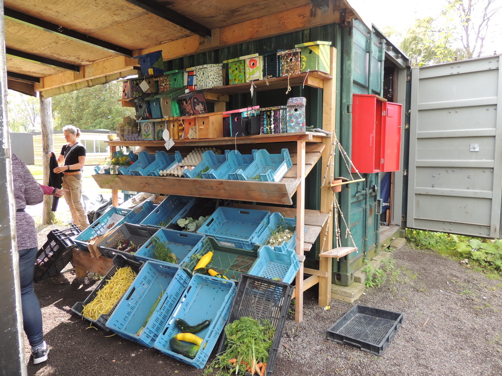 De eieren vliegen elke donderdag de deur uit bij de winkel van de Ecotuin van DZB op de grens van Leiden en Oegstgeest. Ook al kosten ze dertig cent per stuk. Maar ze worden gelegd door de gelukkigste kippen van de Leidse regio. Voor de groente en het fruit dat eveneens kakelvers van het land komt, betaal je slechts een gering bedrag. Iedereen moet hier kunnen komen kopen is het devies, ook mensen met weinig geld.