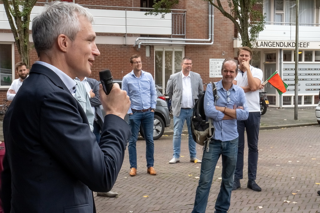 Op het dak van het wooncomplex aan de Langendijkdreef in Leiderdorp is gisteren de eerste sociale zonnestroominstallatie in gebruik genomen. Sociale huurders van woningcoöperatie Rijnhart kunnen hierdoor, zonder inleg vooraf, profiteren van zonnestroom. Rijnhart wonen heeft de landelijke primeur met het delen van duurzame energie.