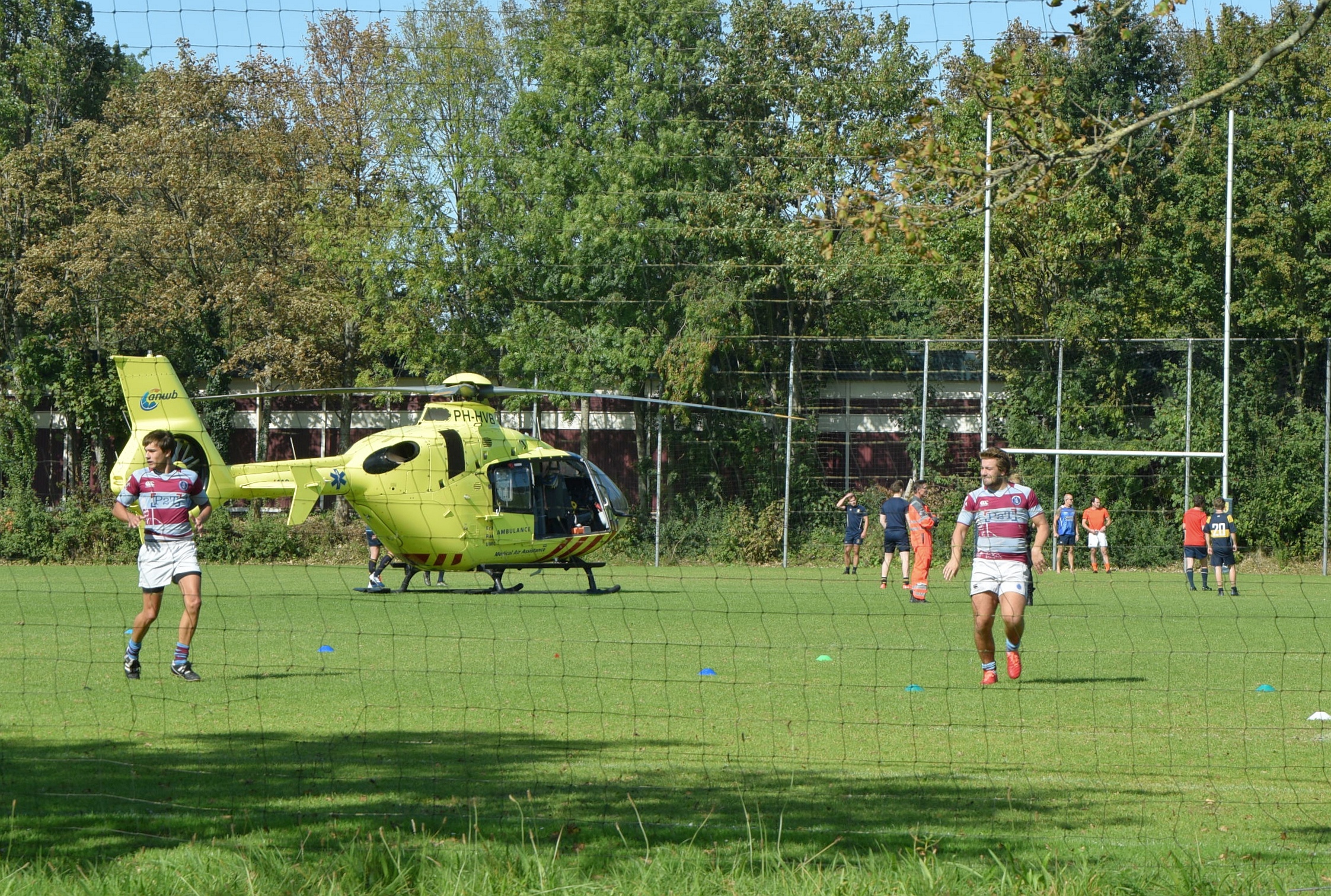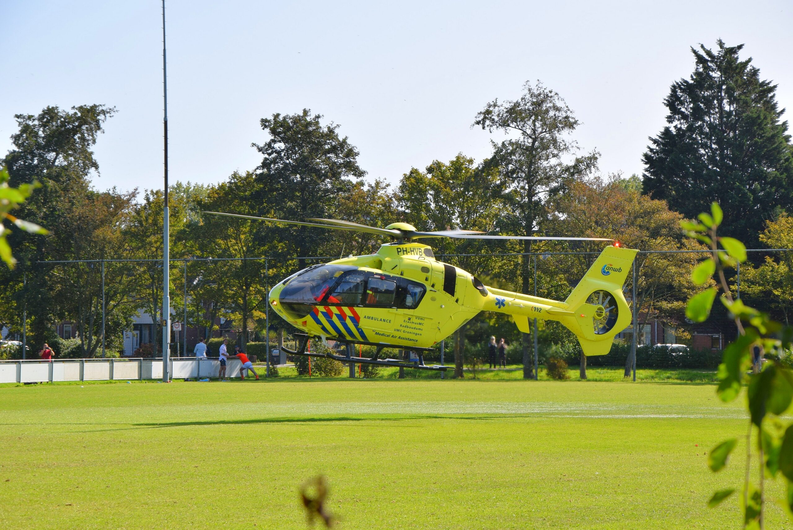 De trauma-arts werd door de politie opgehaald en naar het juiste adres gebracht. De helikopter landde terwijl op het veld een wedstrijd werd gespeeld. Die werd stilgelegd, maar na de landing weer hervat. De helikopter stond toen nog gewoon op het veld.