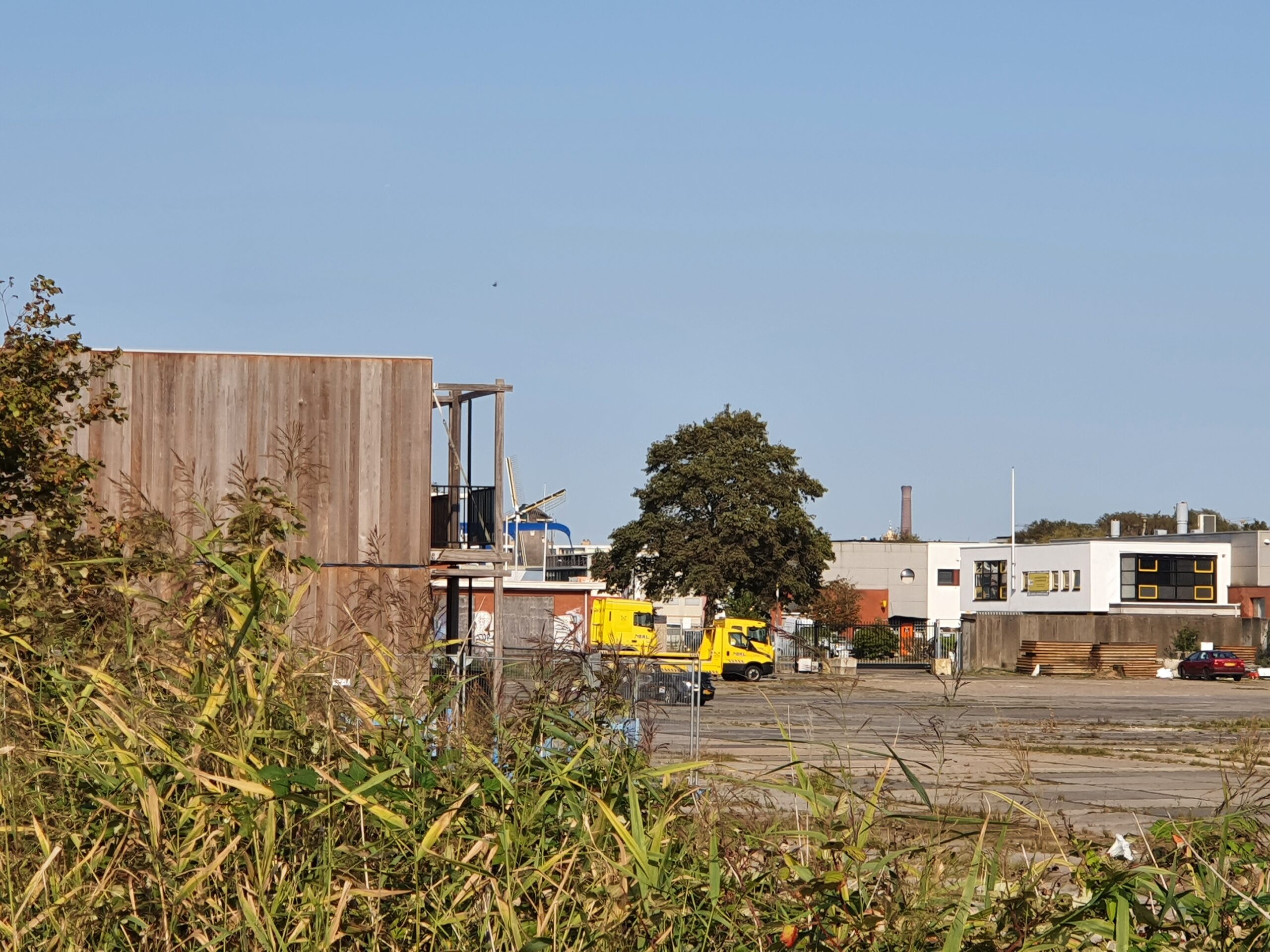 Het Werninkterrein zoals het er nu bijligt. Het doet voornamelijk dienst als opslag voor bouwmaterialen en tijdelijk ook voor de woonunits die deze week worden neergezet aan de Verdamstraat. (Foto’s: Chris de Waard).
