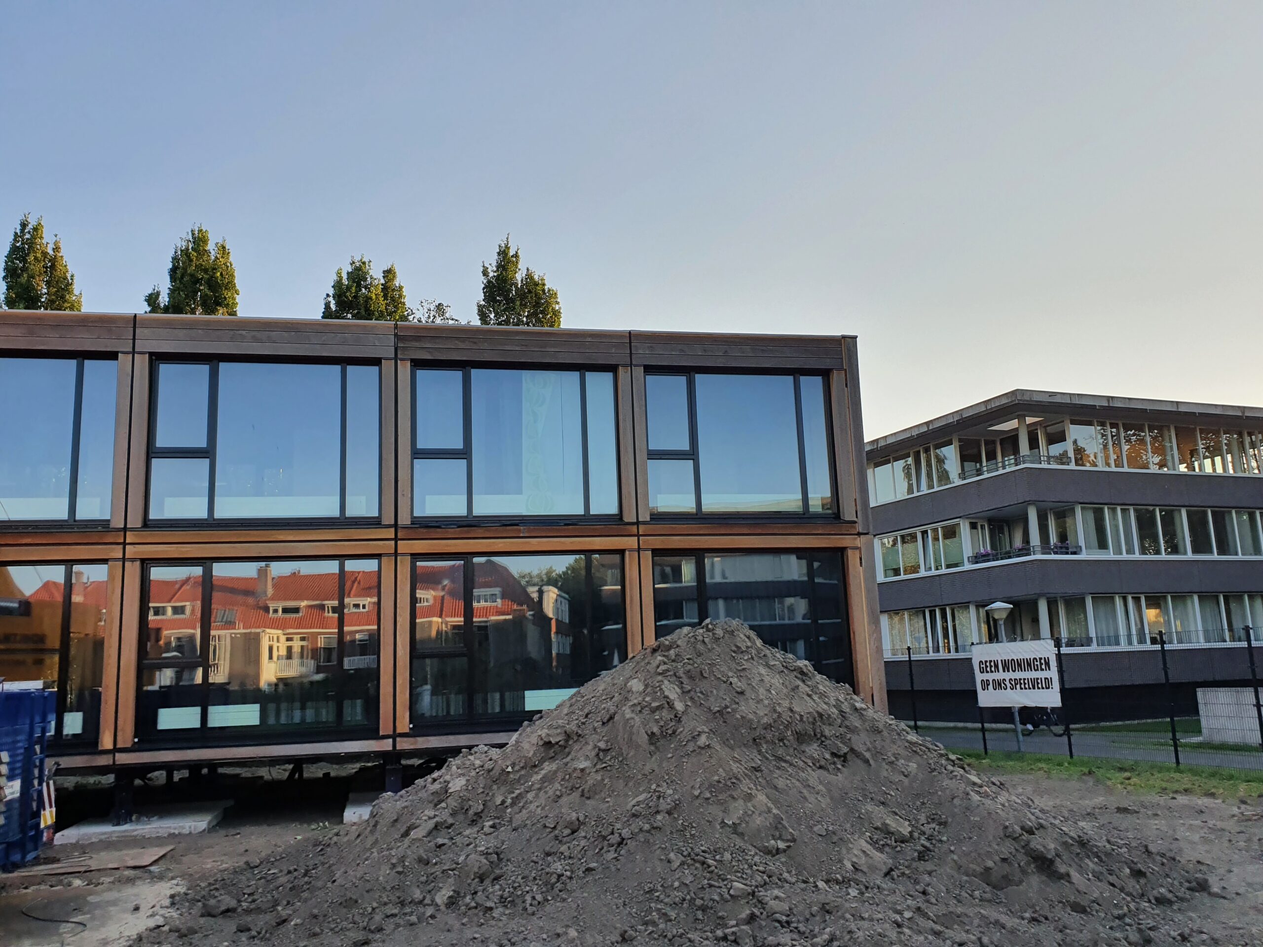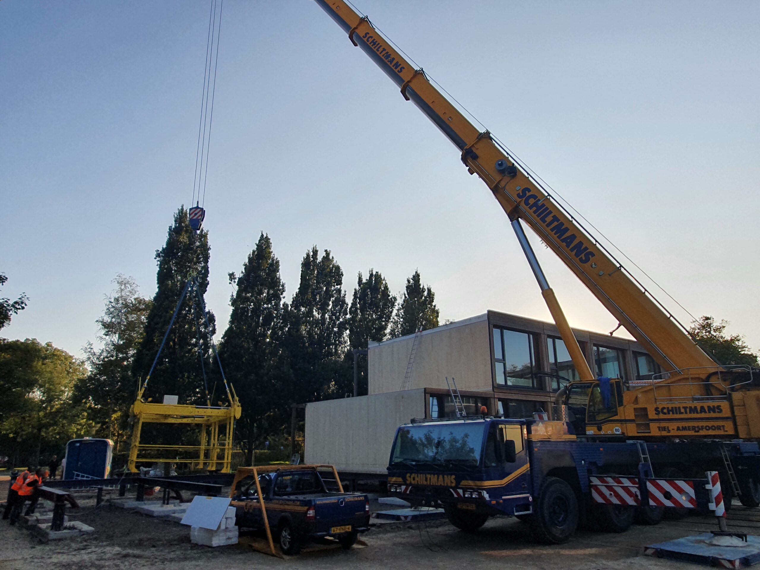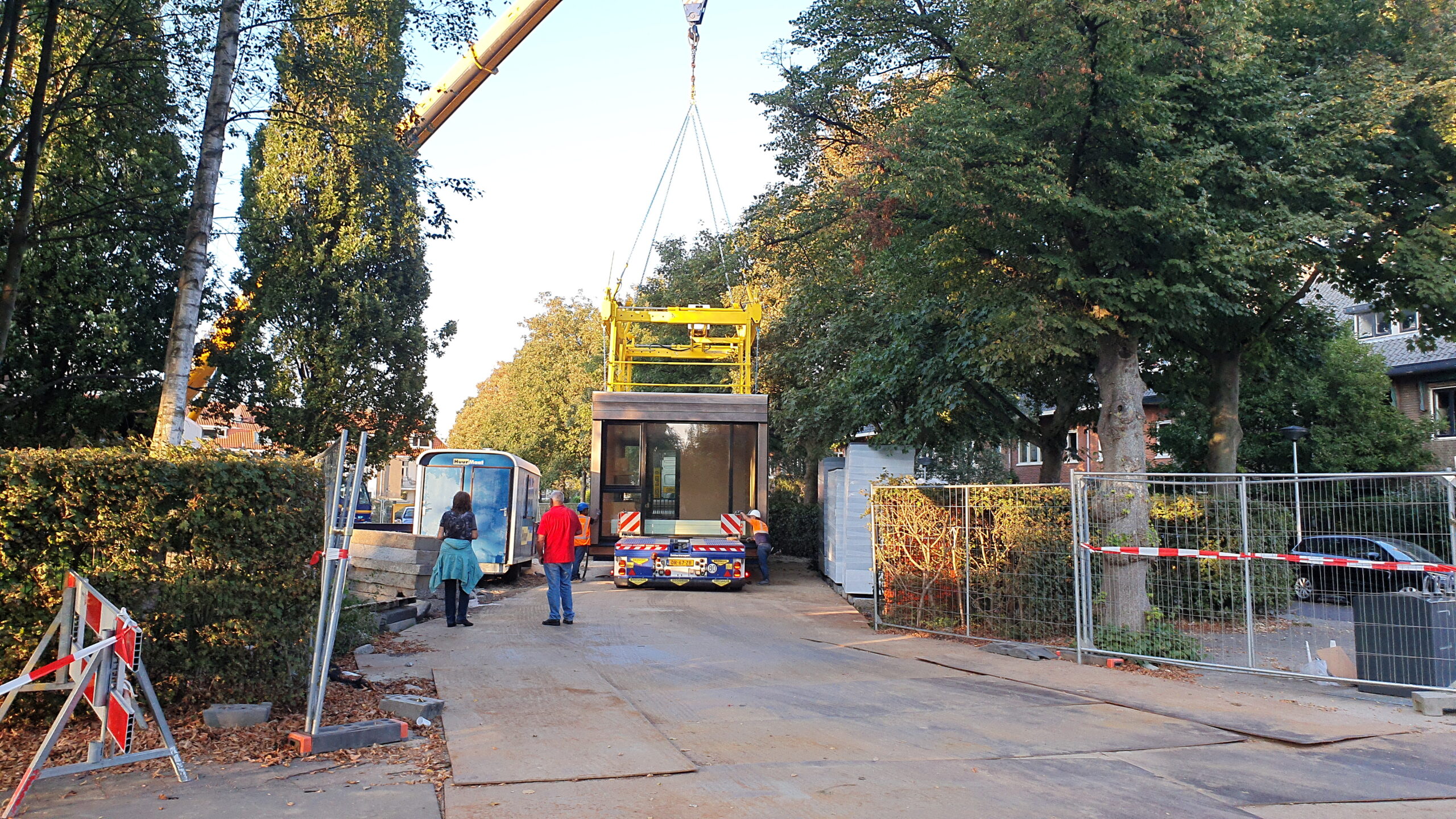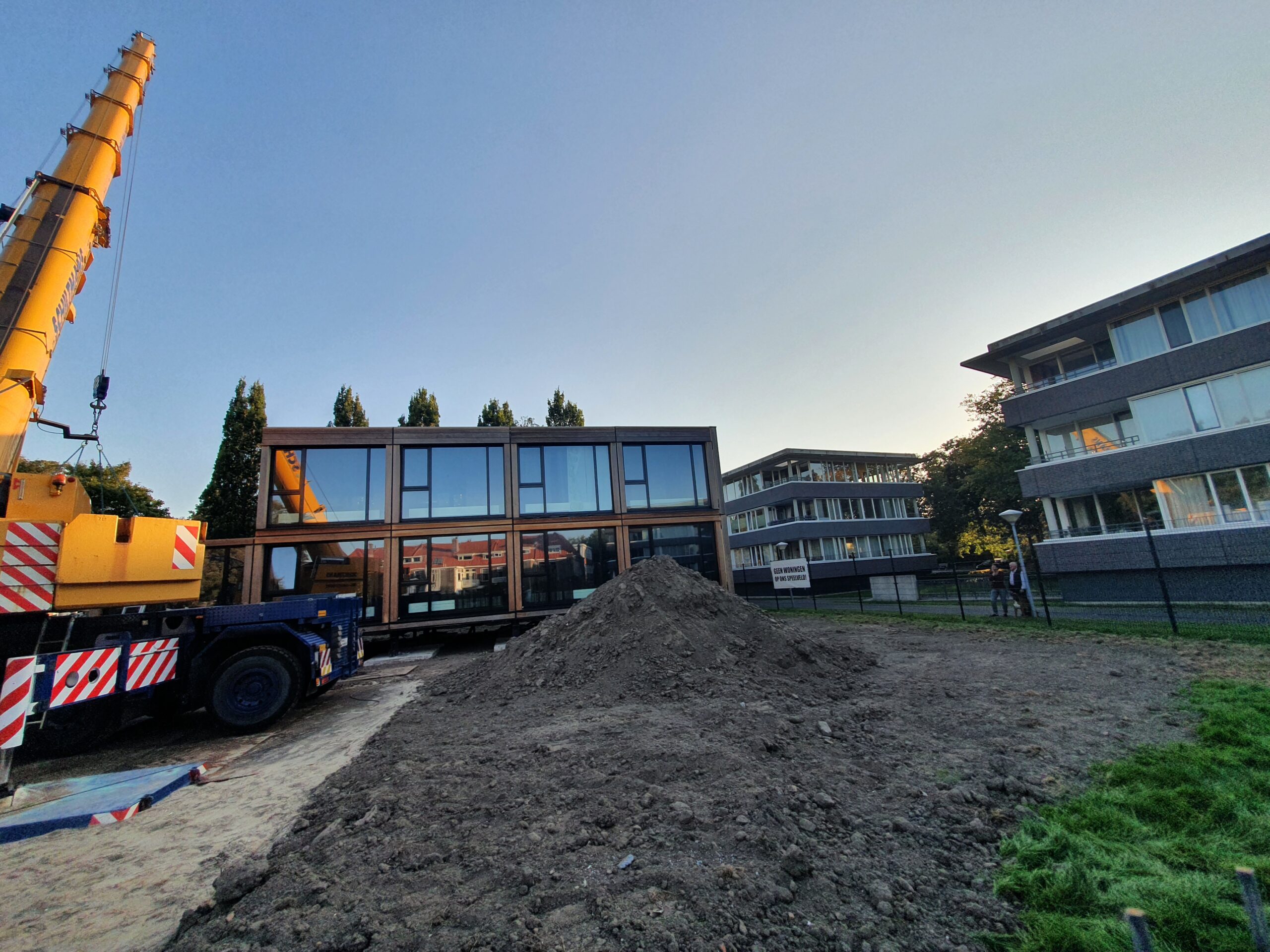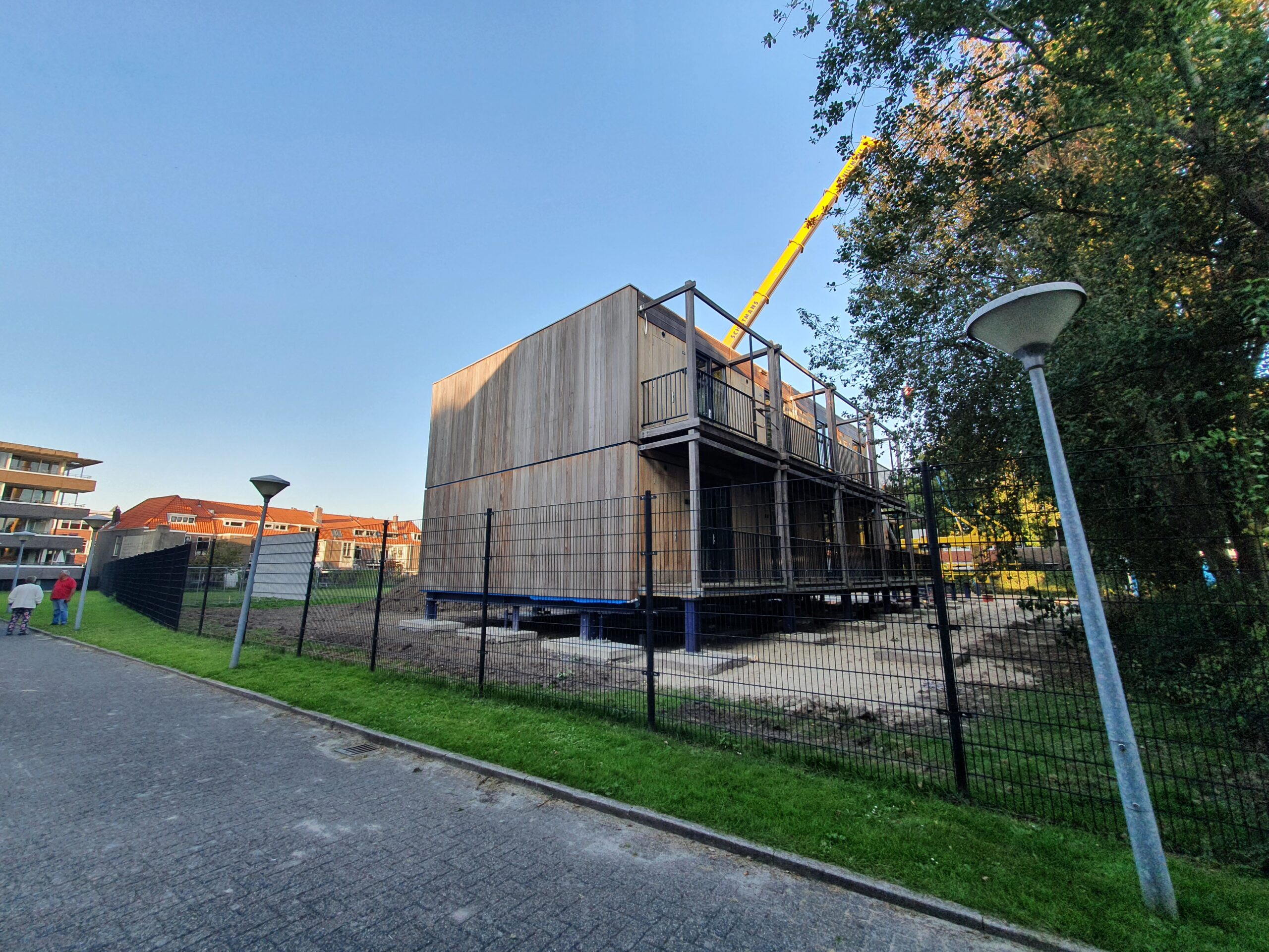 De zestien houten woningen tussen de Burggravenlaan en de Verdamstraat zijn deze week op hun plaats gezet. Vanaf medio oktober bieden ze onderdak aan Leidse woningzoekenden. Een flink deel van de toekomstige bewoners heeft een verleden heeft als dakloze. Met begeleiding van stichting De Binnenvest maken ze hier een nieuwe start. Het is de bedoeling dat ze na maximaal een jaar doorstromen naar een reguliere woning.