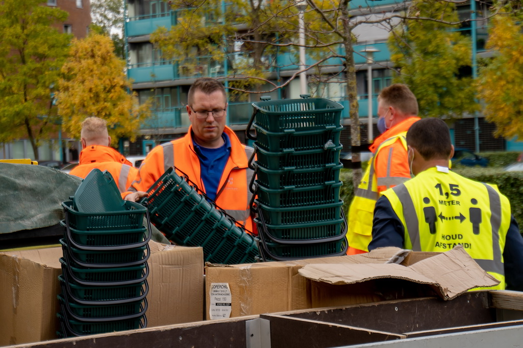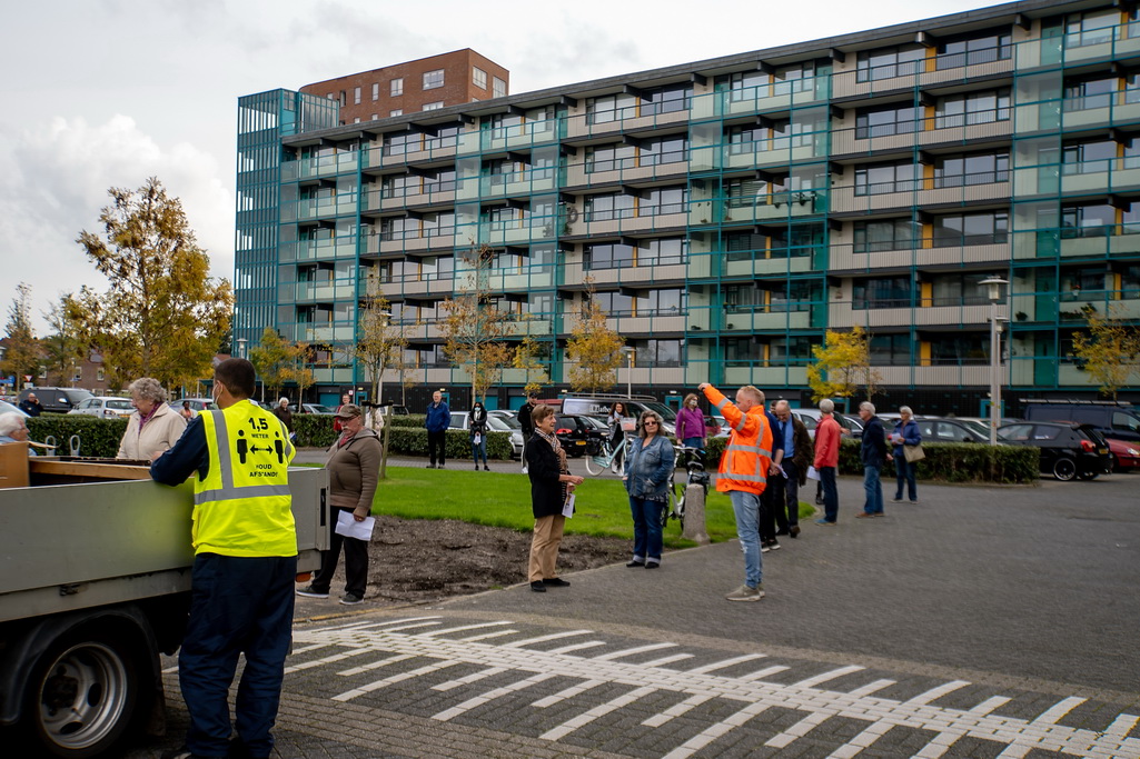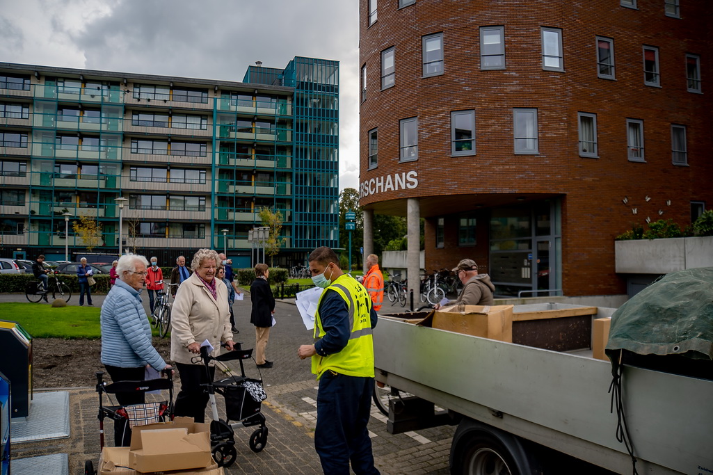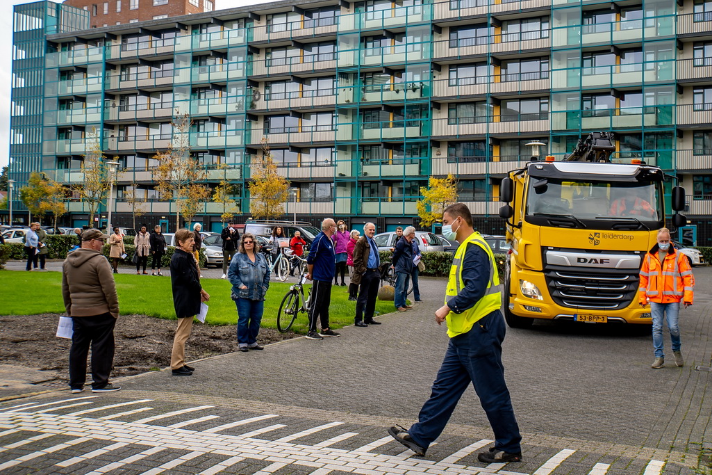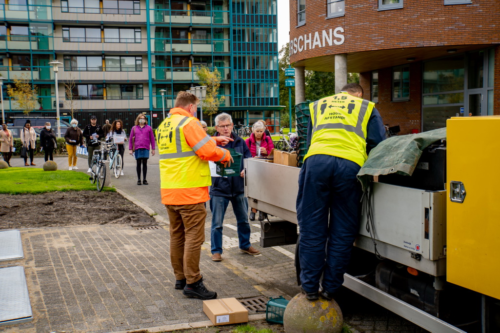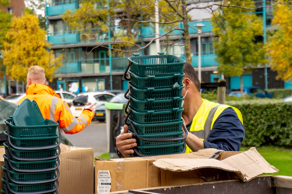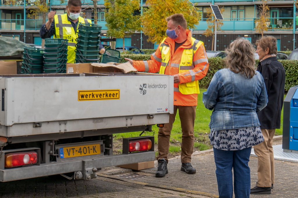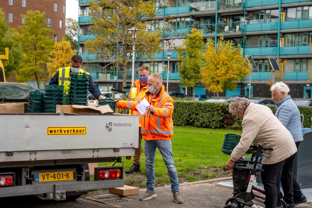 De Leiderdorpse wethouder Rik van Woudenberg heeft dinsdagmiddag geholpen met het uitdelen van GFE-bakjes aan bewoners van de hoogbouw aan de Schansen en Dreven. Bij de appartementengebouwen zijn door de gemeente zuilen geplaatst om groente-, fruit- en etensresten apart in te zamelen. Daarmee wordt komende week begonnen bij alle hoogbouw-locaties in het dorp. Bij een enkel complex kan dat niet met containers. Daar wordt maatwerk toegepast.