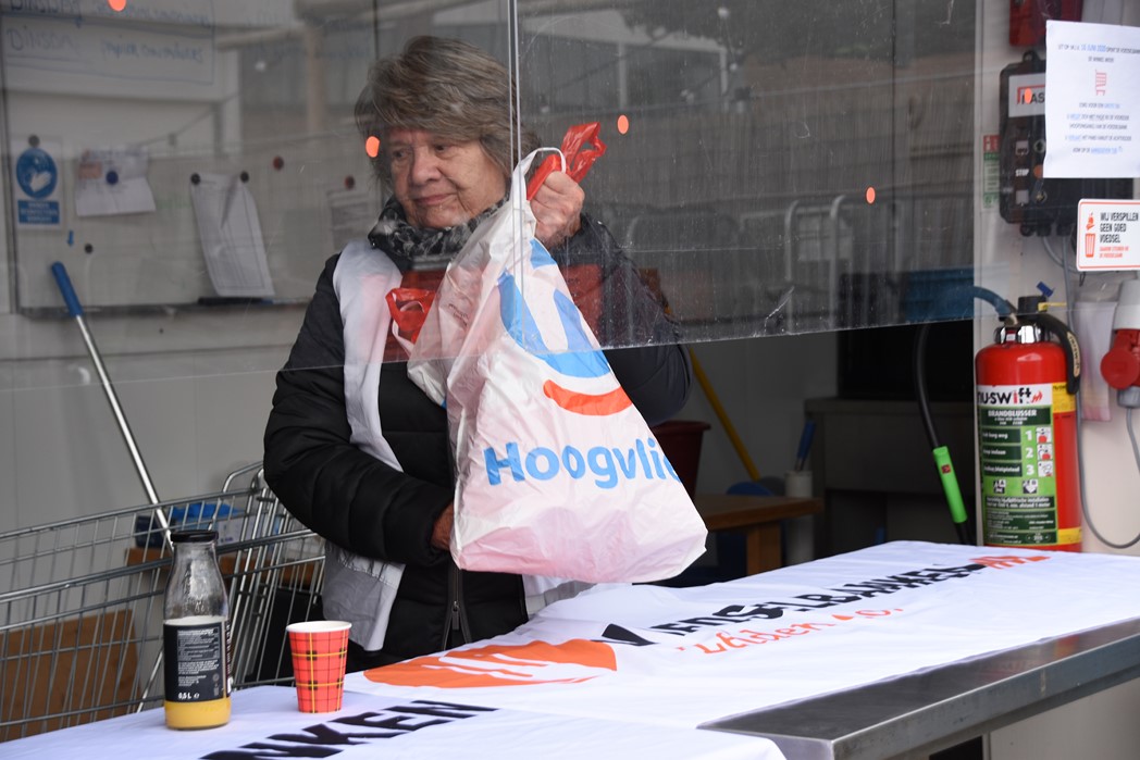 Van Schie heeft zelf eerder die ochtend vouchers uitgedeeld in een van de winkels van supermarktketen Hoogvliet. “Dat liep goed, maar niet iedereen heeft er tijd voor. Ik merkte duidelijk dat vroeger in de ochtend mensen meer de tijd nemen. Later op de dag hebben mensen meer haast. Ik zag wel dat er gauw opstoppingen ontstaan, zodra je mensen even aanspreekt, en dat willen we voorkomen. We zijn aan het praten met busonderneming Arriva die hier in de Leidse regio rijdt of we met hen een samenwerking aan kunnen gaan. Dan kunnen we wellicht met een bus steeds voor de deur van een andere supermarkt gaan staan en op die manier goederen veilig inzamelen. We zijn aan het zoeken naar andere manieren, zoals zovelen in deze corona-crisis.”