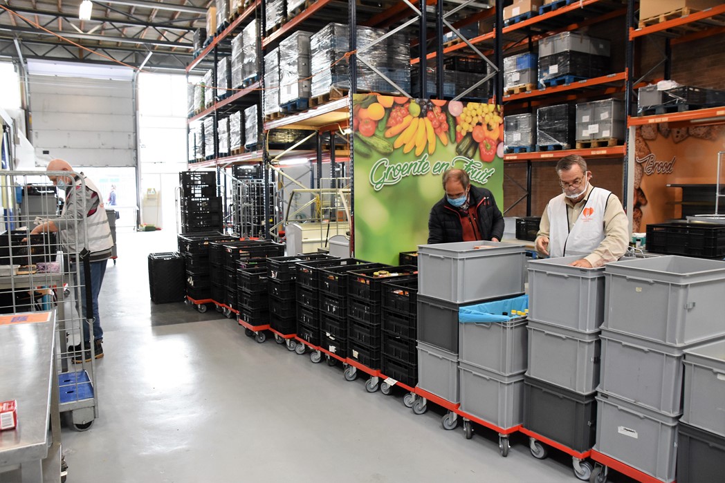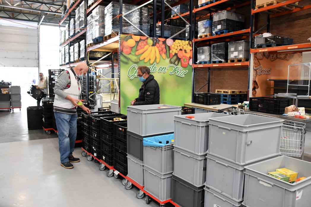 Karel van Schie denkt dat halverwege de dag zo’n 25 donateurs aan de achterdeur van de Voedselbank zijn geweest, waar Eveline Idema de blikken bonen en pakken rijst aanpakt en in een winkelwagentje legt dat vervolgens door een van de andere vrijwilligers van de Voedselbank in de juiste krat wordt geplaatst. “We krijgen hele diverse zaken binnen en allemaal goede spullen. Naast eten in blik ook bijvoorbeeld luiers. We kunnen het allemaal goed gebruiken.”