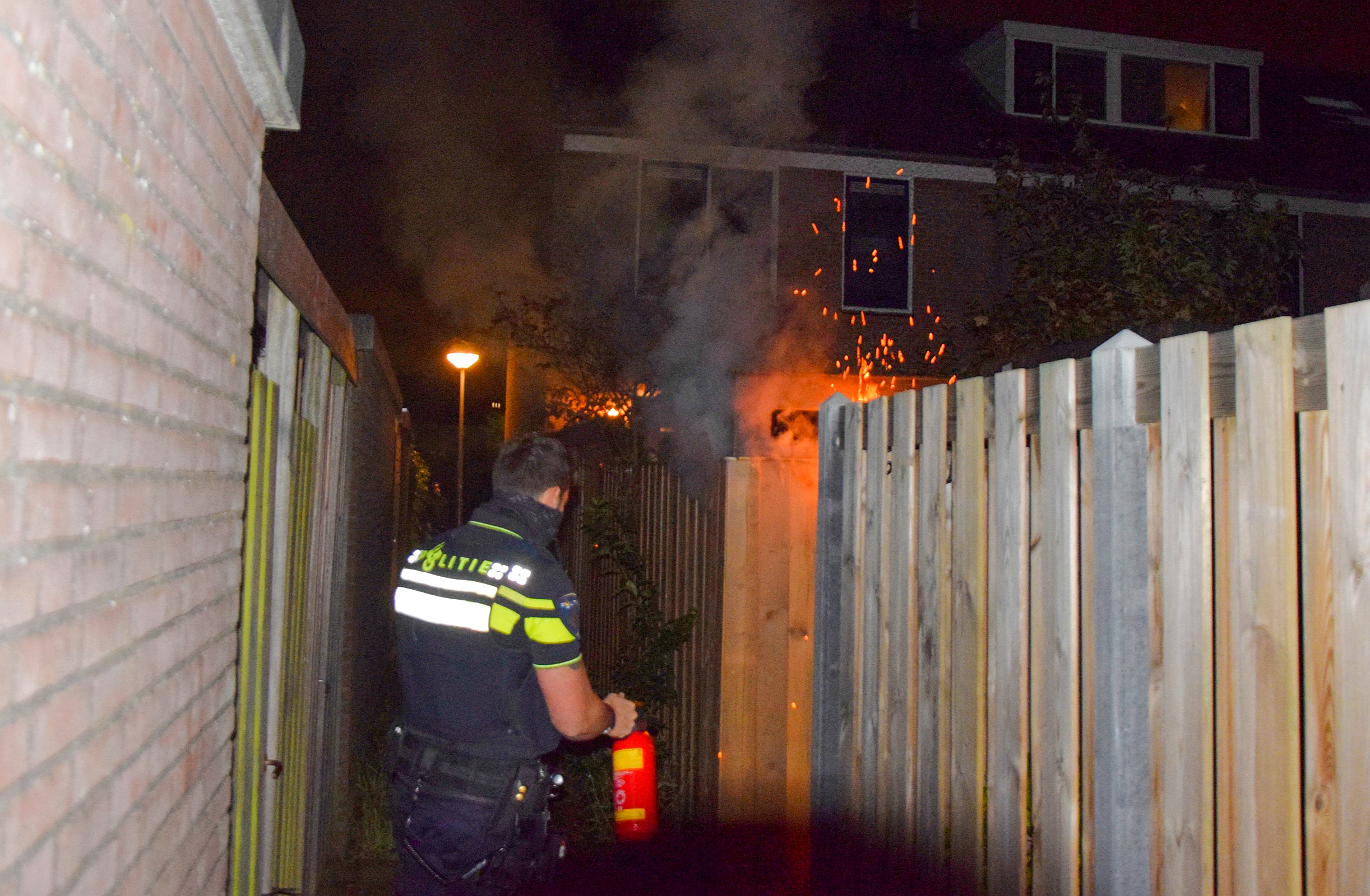 De politie was snel ter plaatse en agenten gingen meteen met handblussers de vlammen te lijf. De brandweer arriveerde kort daarop en maakte de blusklus af.