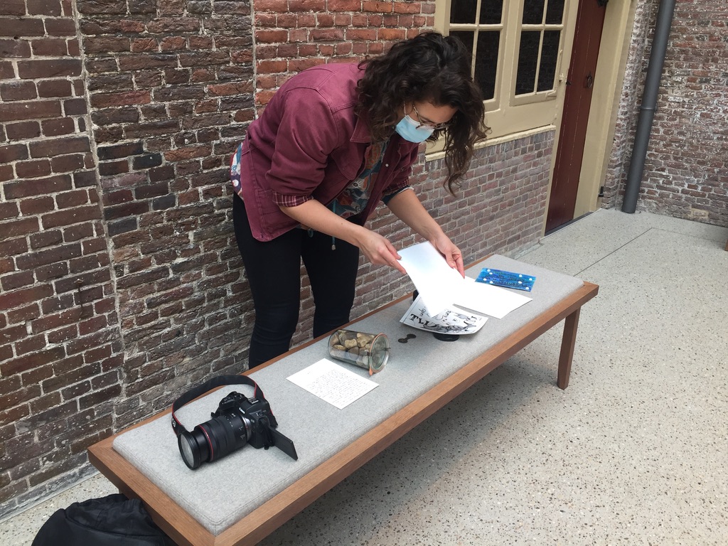 Verslaggeefster Gerry van Bakel in gesprek met ervaringskunstenaar Roos Tulen over haar project Thuis.