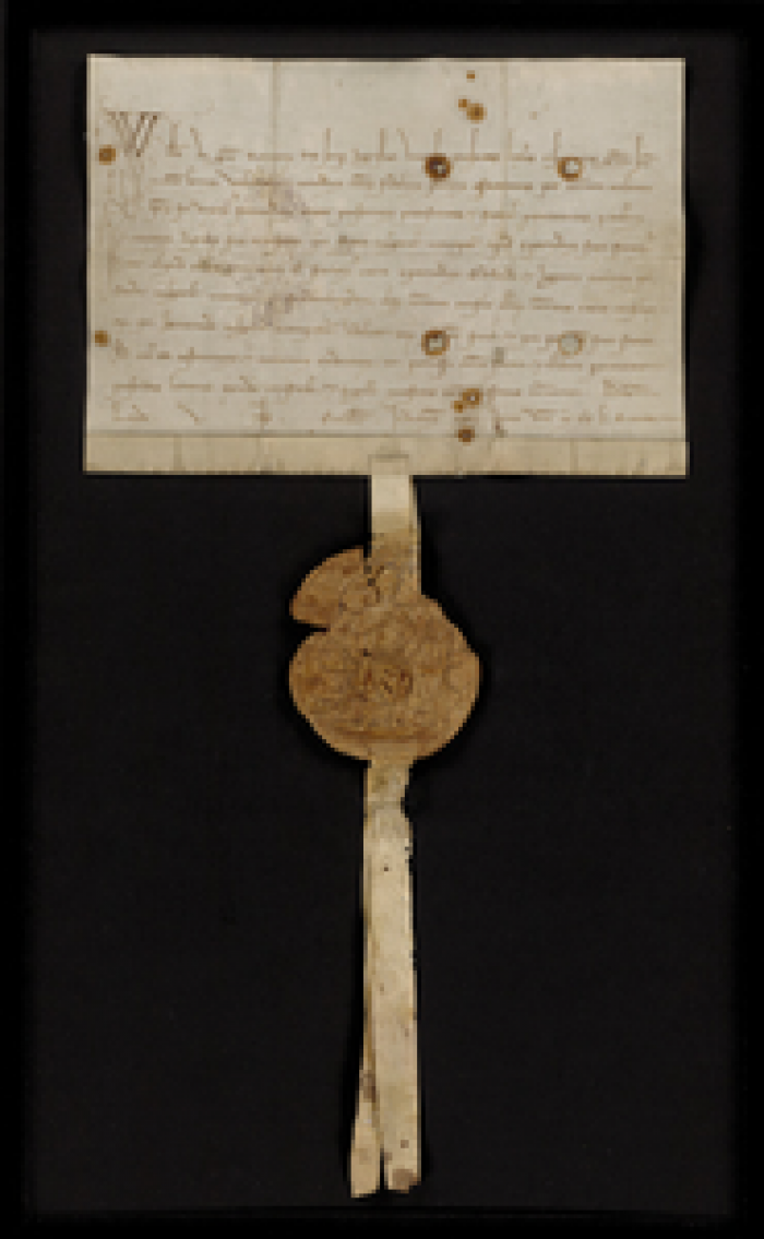 Het is oktober 1255 als Graaf Willem II van Holland zijn zegel zet op het charter van Rijnland. Het document tekent het begin van de organisatie Rijnland. “Dit jaar vieren we dat we al 765 jaar werken aan droge voeten en schoon water. Het charter is het oudste stuk in ons archief. Een klein stuk perkament, maar van enorme betekenis”, vertelt Rogier van der Sande, dijkgraaf van het hoogheemraadschap van Rijnland.