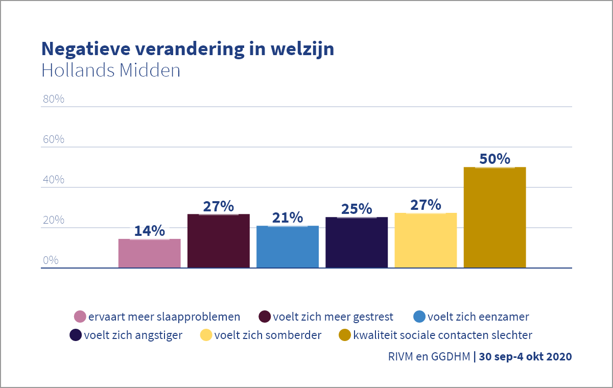 In het onderzoek is verder gekeken naar het welzijn van mensen. Daaruit blijkt dat het aantal gevoelens van angst, stress en somberheid zijn dit najaar weer is toegenomen, net als tijdens de lockdown in het voorjaar het geval was. Deze zomer namen die gevoelens juist af, constateert Hanning. “Maar dit onderzoeks is nog van voor de nieuwste maatregelen van 13 oktober. Bij de volgende meting zijn we dus benieuwd of deze trend doorzet.”