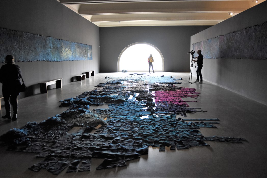 Geen betere plek voor een wolkunstenaar dan Museum De Lakenhal in Leiden. Het is een soort thuiskomen voor de geboren Limburgse die nu in Friesland woont. Claudy Jongstra ontdekte vijfentwintig jaar geleden wol als materiaal en de rest is geschiedenis. Voor deze solotentoonstelling maakte Jongstra een heel nieuw, imposant werk: Nine. Te zien tot en met 28 februari 2021.