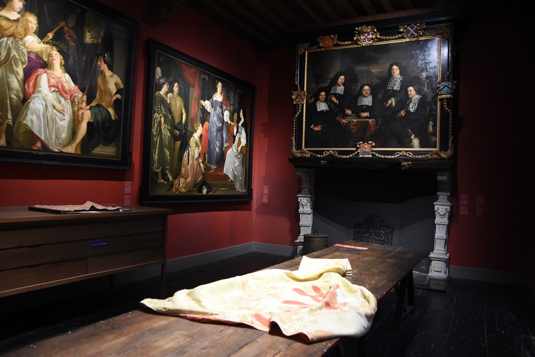 Brandenburg is zeer content over de samenwerking met Jongstra. “We zijn er jaren mee bezig geweest om het allemaal voor te bereiden. Het is een hele mooie tentoonstelling geworden. Naast Woven Skin en Nine, hangen er boven ook werken van Jongstra naast de historische stukken. Zo ligt er een staalboek van Jongstra naast de staalboeken van het Leids laken. Haar werk past hier gewoon heel erg goed.”