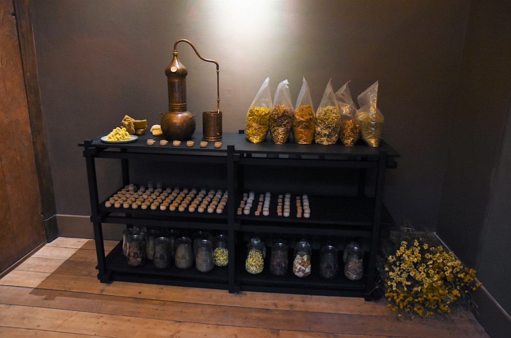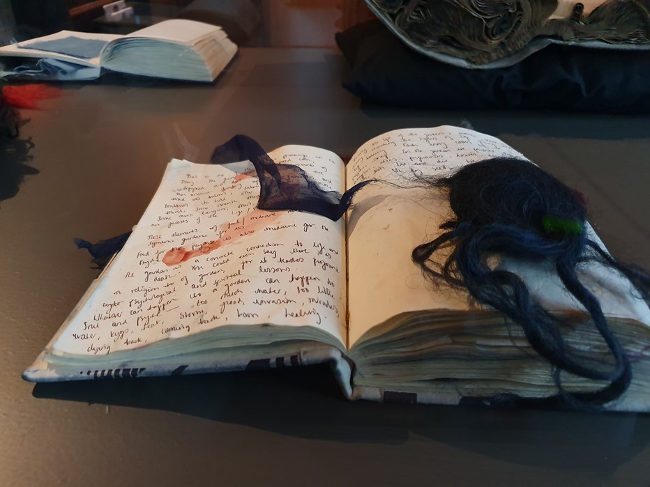 Voor haar wolkunst houdt Jongstra zoveel mogelijk zelf in de hand. De wol komt van een eigen kudde en ze teelt de meekrap, wede en indigo waarmee ze de wol kleurt in haar eigen tuin en sinds dit voorjaar ook in de Leidse Hortus Botanicus.