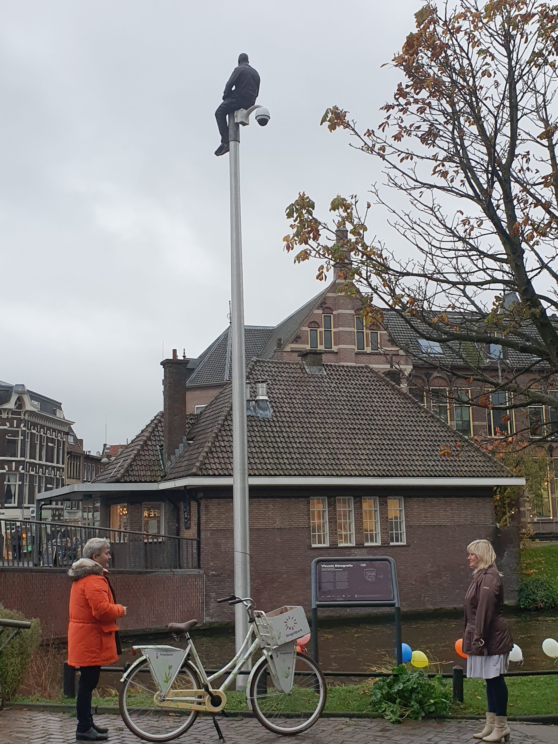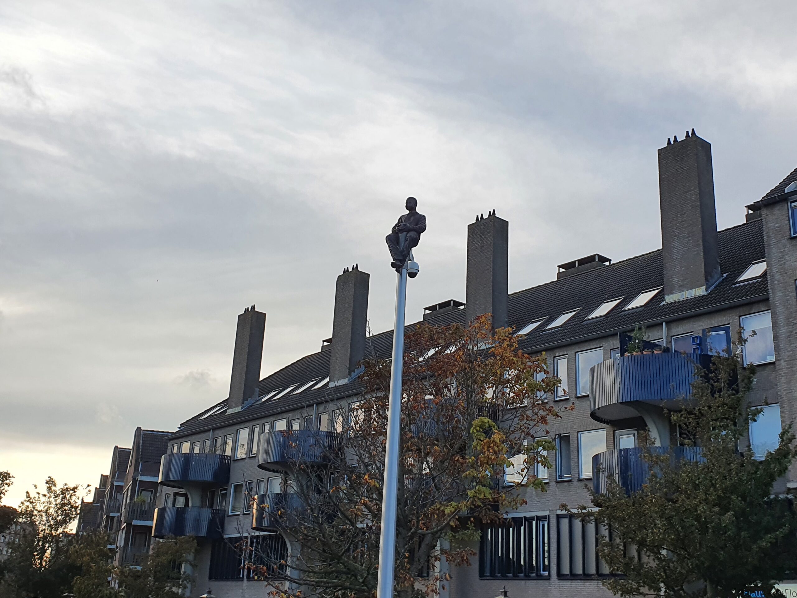 De opening vond vrijdag met slechts een handjevol aanwezigen plaats tegenover museum Volkenkunde. Daar staat ook één van de kunstwerken. Of liever gezegd zit. ‘Man on a Pole’ van de Spaanse kunstenaar Fernando Sánchez Castillo is een bestaand werk dat goed bij het thema past. In de Spaanse enclave Melilla in het noorden van Marokko wachten veel Afrikanen op een kans om over de hekken naar Europa te vluchten. Vaak klimmen ze daarbij in lantaarnpalen voor een eerste blik op een mogelijke toekomst.