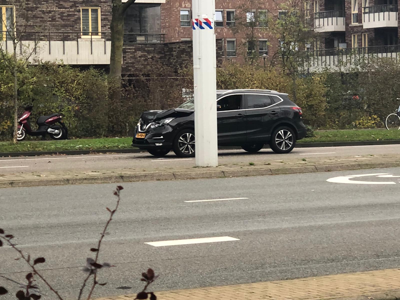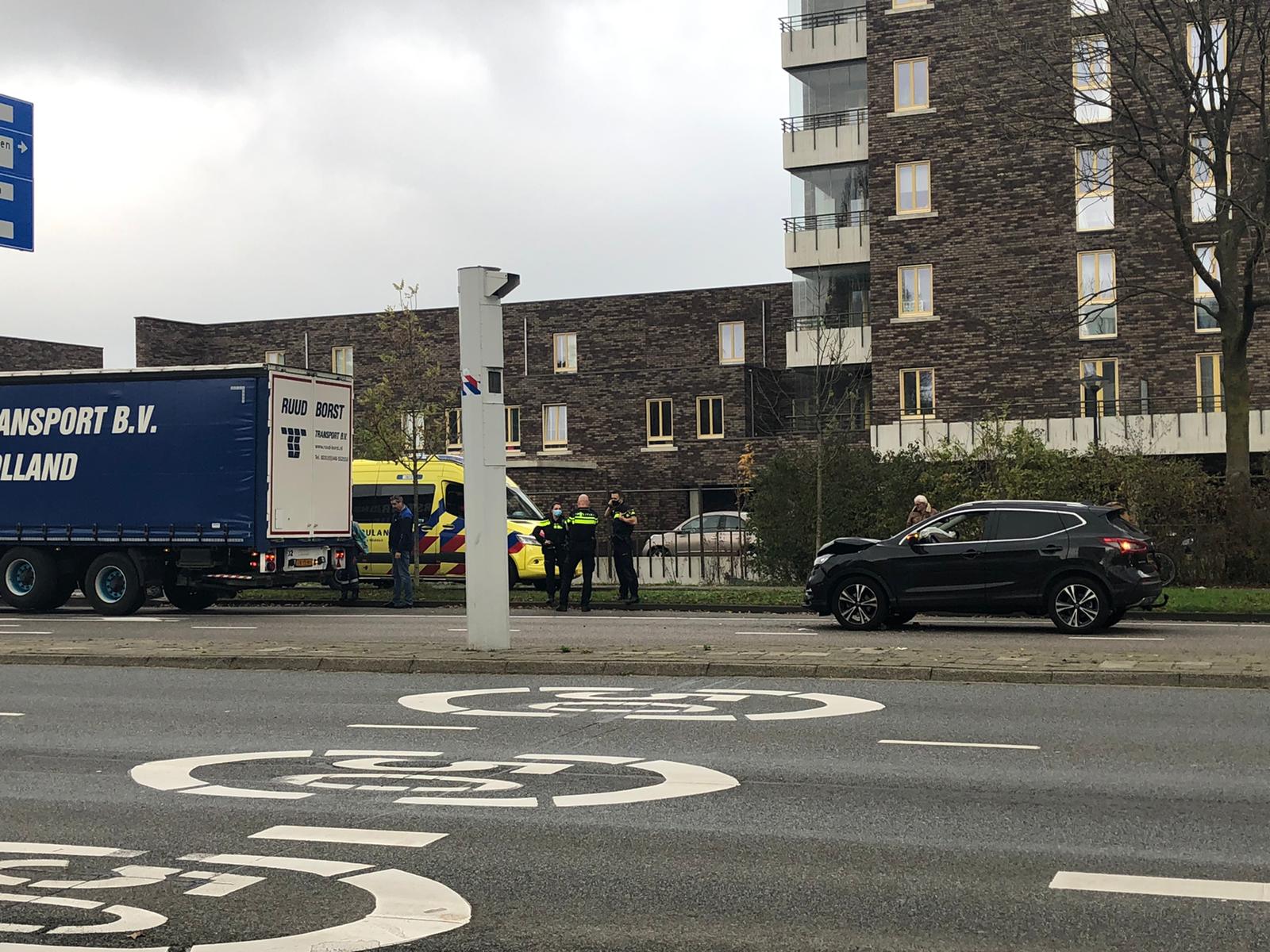 Een auto is vanmiddag op de Churchilllaan hard tot stilstand gekomen tegen de achterkant van een vrachtwagen. Ambulancepersoneel heeft de bestuurder van de personenauto nagekeken. Het is niet bekend of de persoon naar het ziekenhuis is vervoerd. De schade aan de auto is fors.