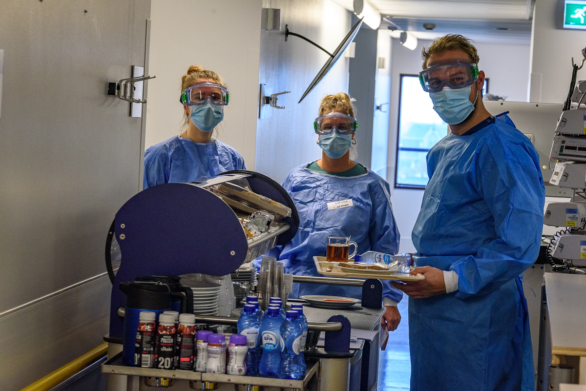 Naast ontbijt, lunch en avondeten rondbrengen, zorgt Van Kuijvenhoven er ook voor dat allerlei zaken die de verpleging nodig heeft op tijd worden aangevuld en voor het grijpen liggen. “Ik durf te zeggen dat wij best wel een belangrijke radertje in het geheel zijn. Maar dat geldt voor iedereen. Van de artsen en de verpleegkundigen tot de servicemedewerkers en de schoonmakers. Samen geven we de beste zorg aan de patiënten.”