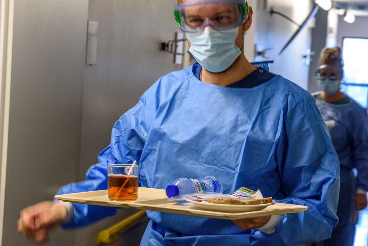 Die patiënten hebben het best zwaar, ziet Van Kuijvenhoven. “Ze hebben het vaak heel erg benauwd, zo erg dat ze moeite kunnen hebben met praten. Ik merk ook dat ze dingen vergeten. Daarom kost het vaak wat meer tijd om een goed menu samen te stellen. En het valt me op dat de patiënten op de covid-afdeling in de tweede golf een stuk jonger zijn. Ze zijn bang en geschrokken en heel erg ziek. Dat is echt niet grappig.”