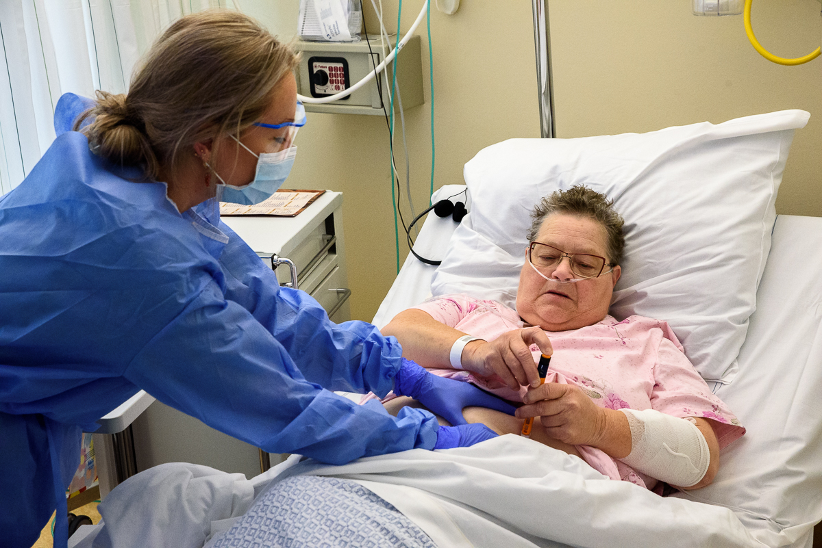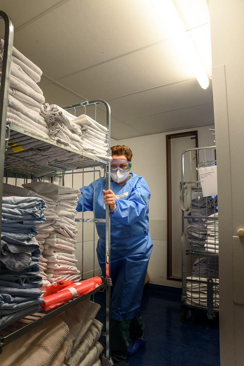 Wie met corona in het ziekenhuis belandt, is echt goed ziek. Benauwdheid, geheugenproblemen, en iedereen aan je bed in een soort maanpak. Servicemedewerker Sascha van Kuijvenhoven doet haar best de patiënten op de covid-afdeling te vertroetelen. “Ons zien ze graag komen, wij brengen geen narigheid.”