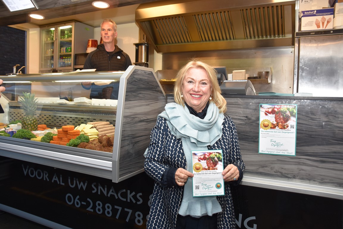 De Oegstgeester horeca kan net als elders wel een steuntje in de rug gebruiken en daarom bedachten Dorpsmarketing Oegstgeest en Sandra Nonhebel projecten de actie ‘De lekkerste bal van Oegstgeest’. Tien horecabedrijven dingen mee om de gunst van de cliënten en daarmee om de Lekkerste Bal Trofee. “Het is een echte ballenactie”, lacht dorpsmarketeer Marjolein van der Jagt vlak nadat de eerste bal, die van snackbar ’t Haasje, vrijdagmiddag was overhandigd aan de voorzitters van Winkelgebied de Kempenaer en van Winkelcentrum Lange Voort.