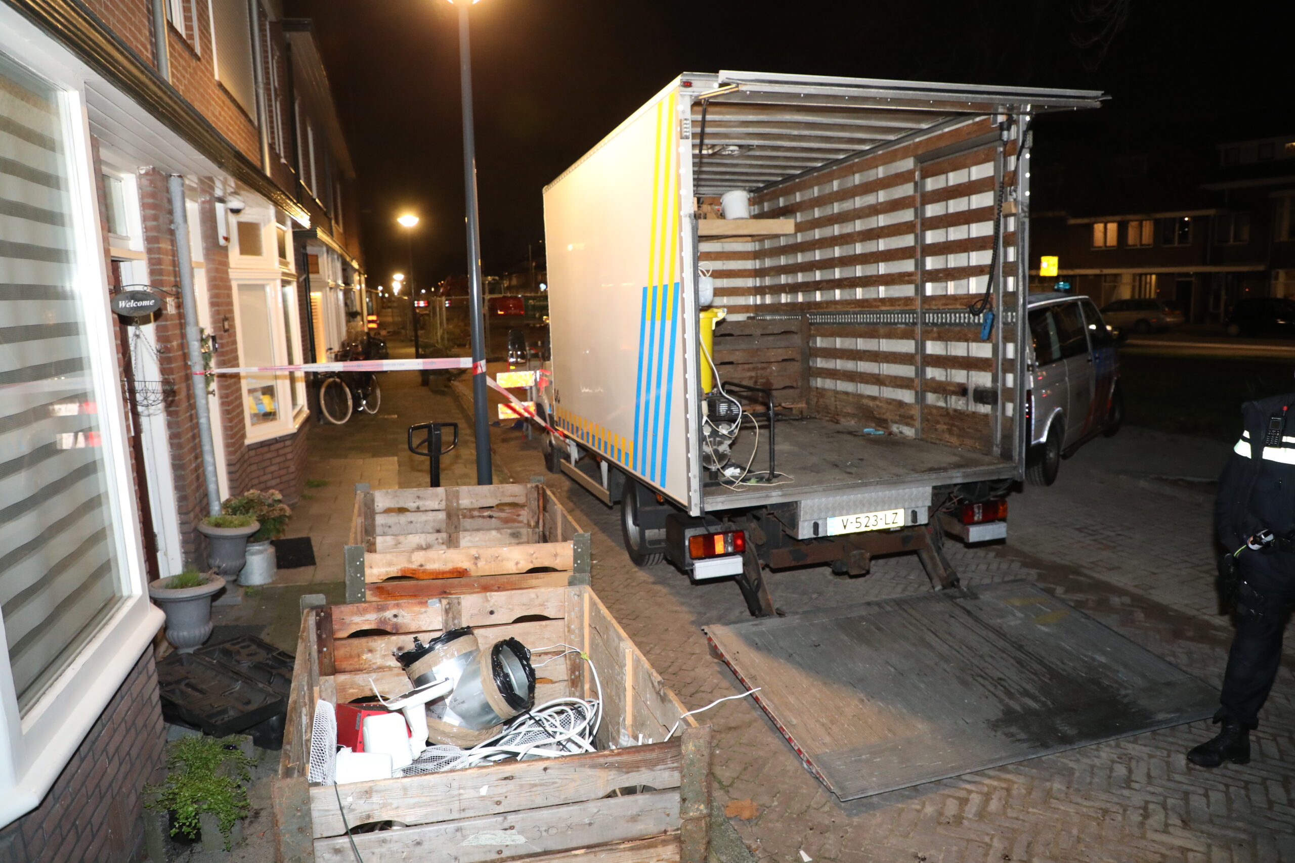 Een gespecialiseerd team heeft de woning ontmanteld en de aangetroffen spullen meegenomen. De hennepplanten zijn ter plaatse door de shredder gegaan. Voor zover bekend zijn er nog geen aanhoudingen verricht.