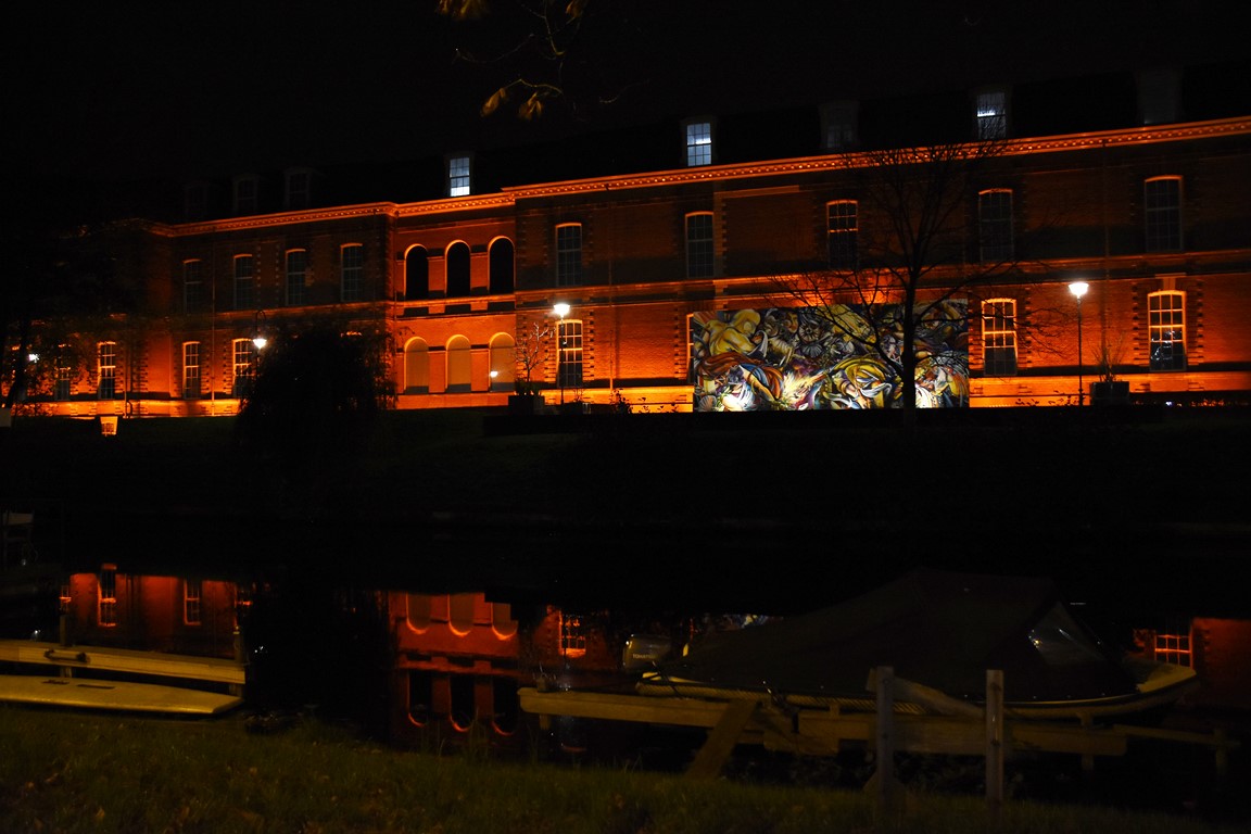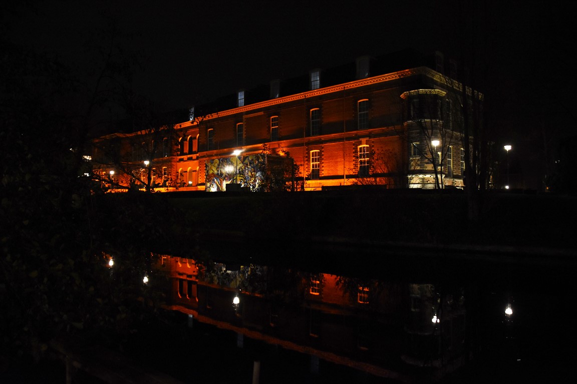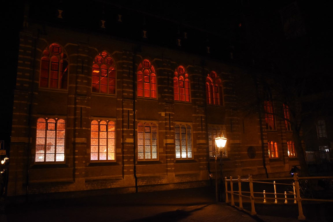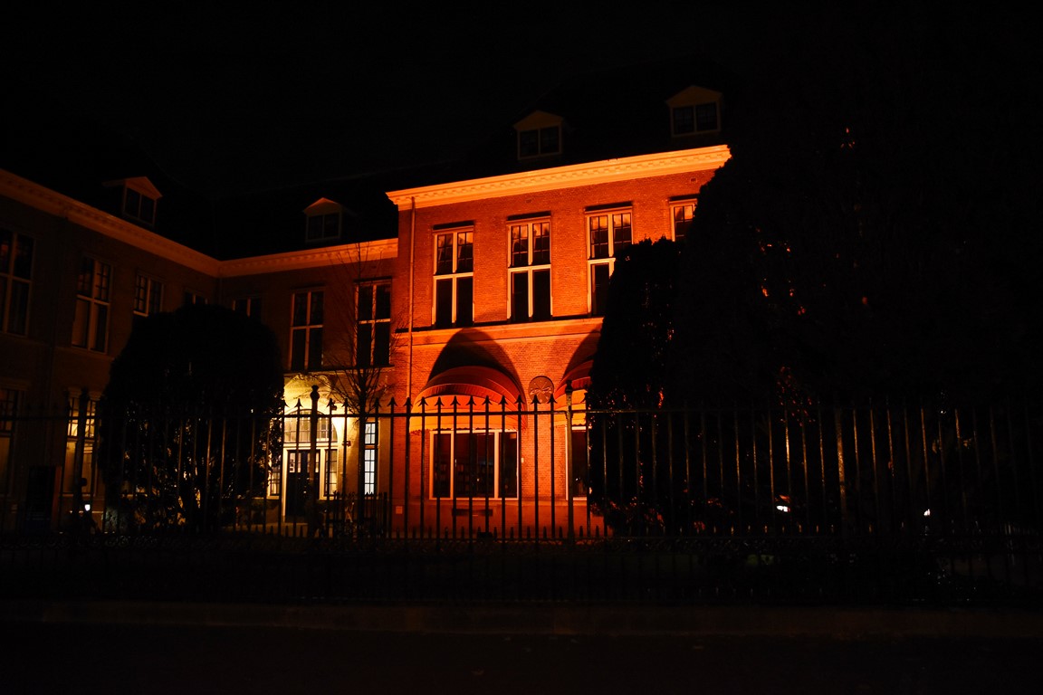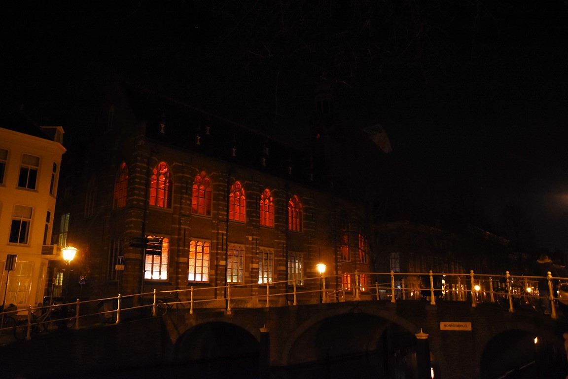 De Leidse Koornbeursbrug kleurde gisteravond Oranje. Daarmee wordt aandacht gevraagd voor het geweld tegen vrouwen, dat ook in Nederland op grote schaal plaatsvindt. Naast de Koornbeursbrug werden ook de Hartebrugkerk, de Schouwburg, museum Volkenkunde en de oude UB, de universiteit en de Zeevaartschool oranje uitgelicht.