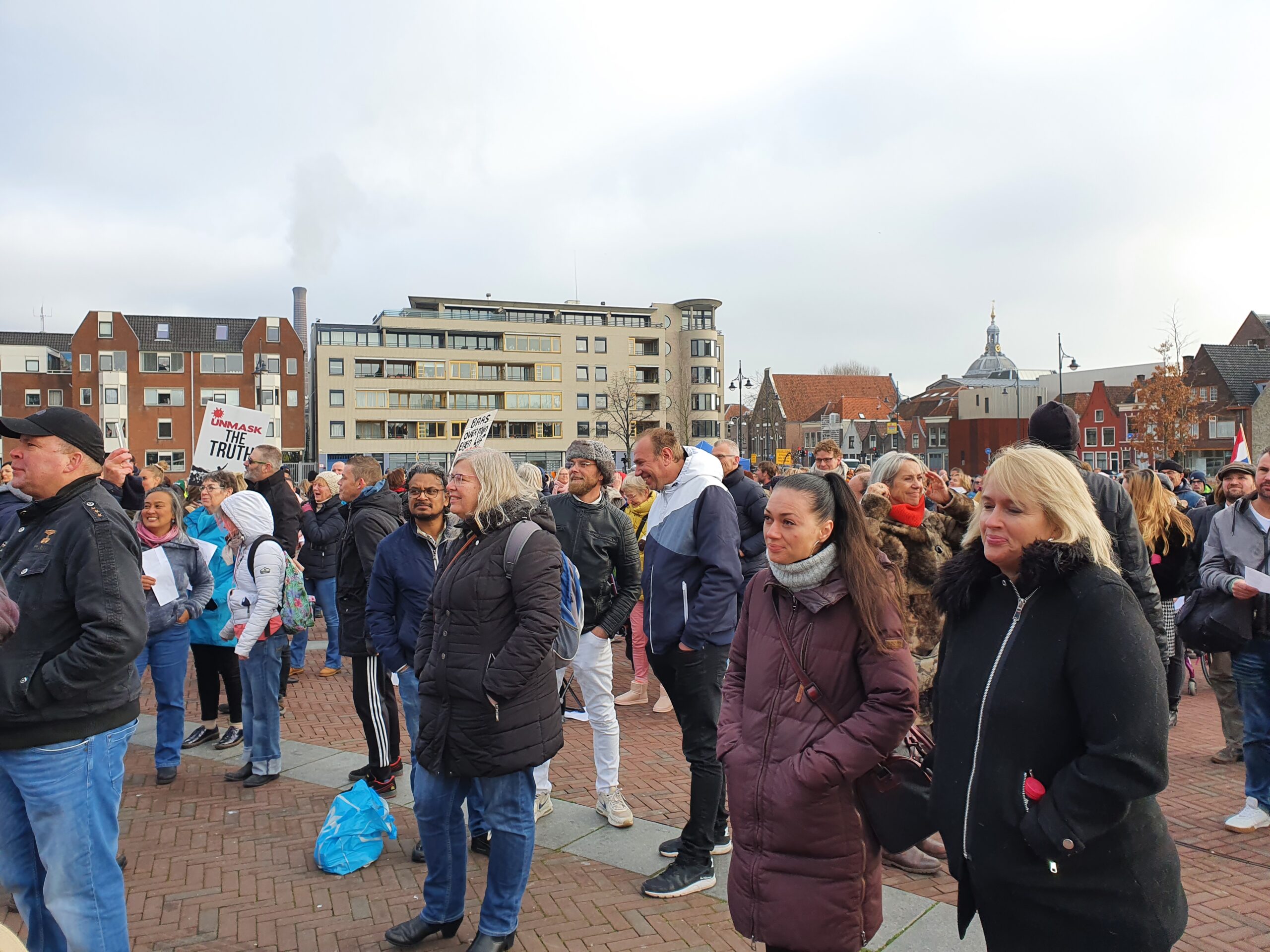 “Vanaf dinsdag leven we in een ‘medische dictatuur’.” De uitspraken die vanaf het podium op de Lammermarkt worden gedaan, liegen er niet om. Het plein wordt deze zondagmiddag ingenomen door circa driehonderd demonstranten die zijn afgekomen op de oproep van de organisatie ‘Voor Vrijheid’ van Frank Ruesink. Zijn beweging roept op tegen het zogenaamd verplicht vaccineren tegen corona en ook tegen de anderhalvemetersamenleving.