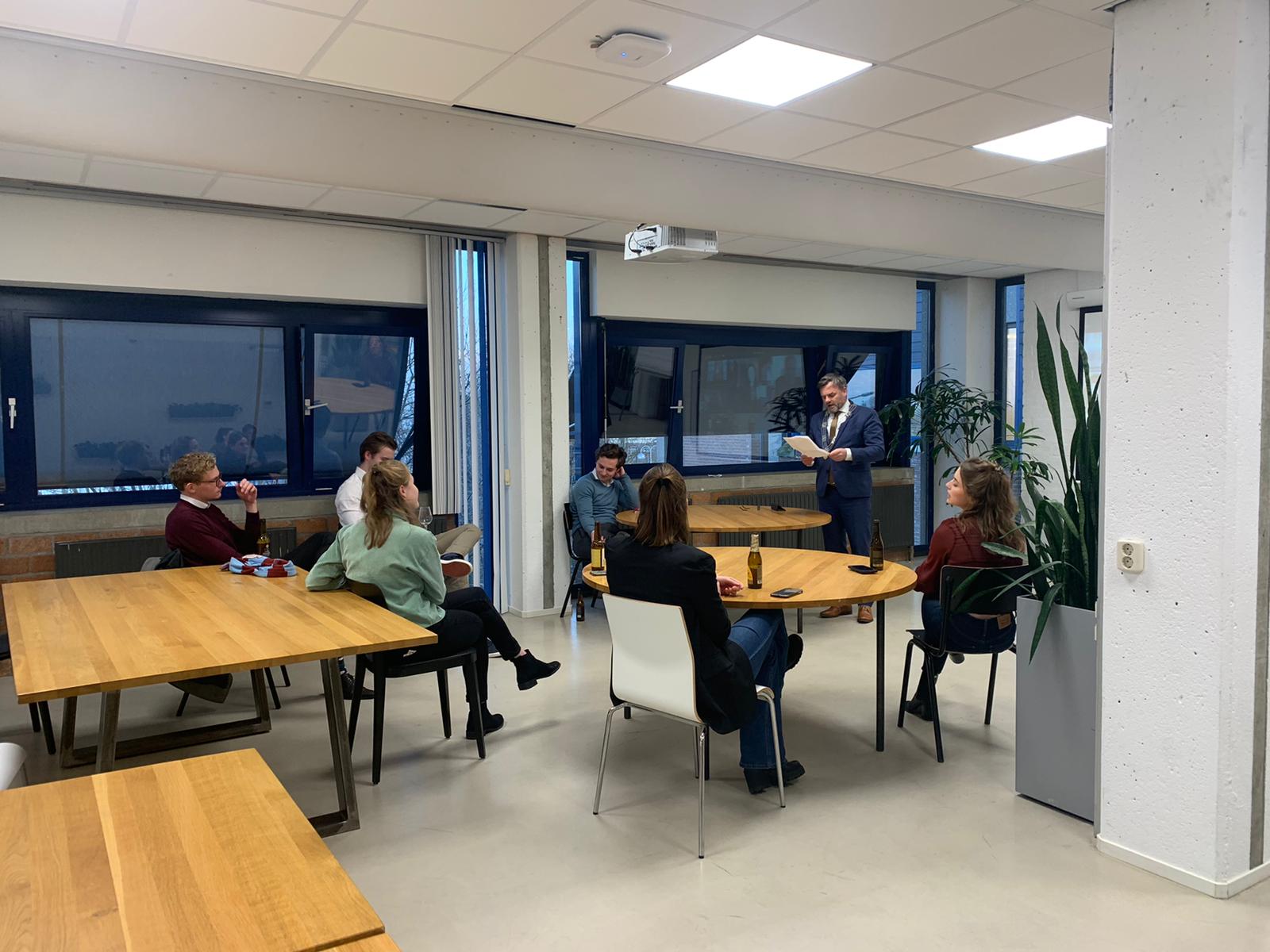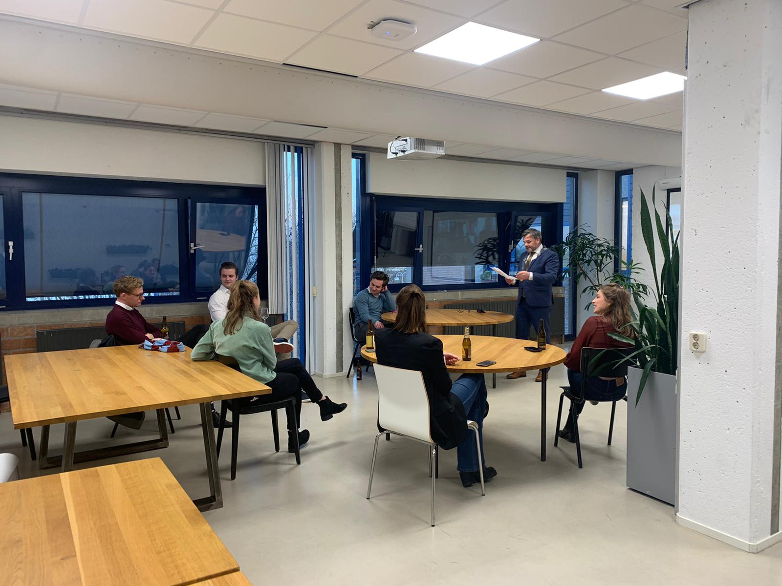 Vanmiddag heeft Hein Laterveer uit handen van locoburgemeester en wethouder Studentenzaken Paul Dirkse de Gouden Speld van de stad Leiden gekregen. Het college van burgemeester en wethouders wil op deze wijze haar waardering uitspreken voor het hele bestuur 2019-2020 van de Plaatselijke Kamer van Verenigingen (PKvV), waar Laterveer de voorzitter van was.