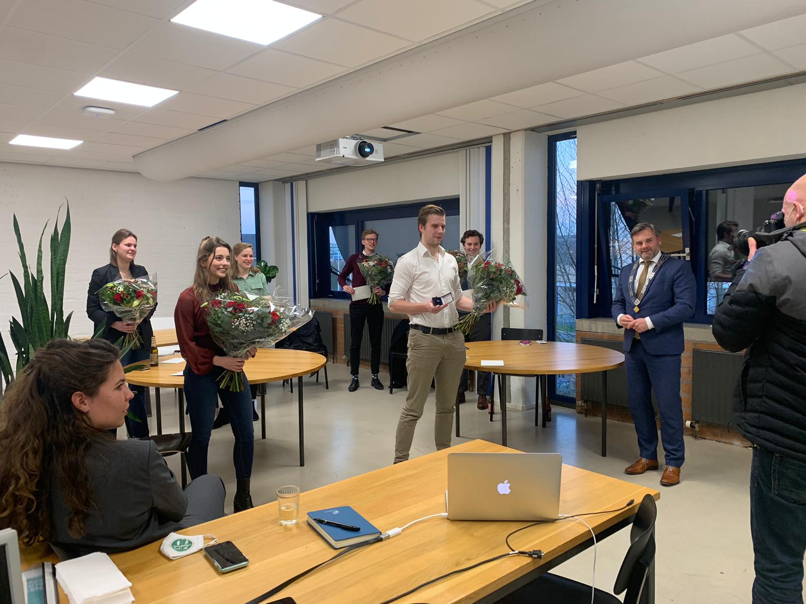 De PKvV is het overkoepelende overlegorgaan voor 24 aangesloten Leidse studentenverenigingen. Het afgelopen jaar is voor de zes leden van het bestuur van de PKvV turbulent verlopen en er kwamen grote vraagstukken en problemen op hen af. “Het bestuursjaar 2019 -2020 heeft deze vraagstukken op kundige en overtuigende wijze opgepakt en bestuurlijke daadkracht vertoond”, zei Dirkse namens het Leidse college bij de uitreiking.
