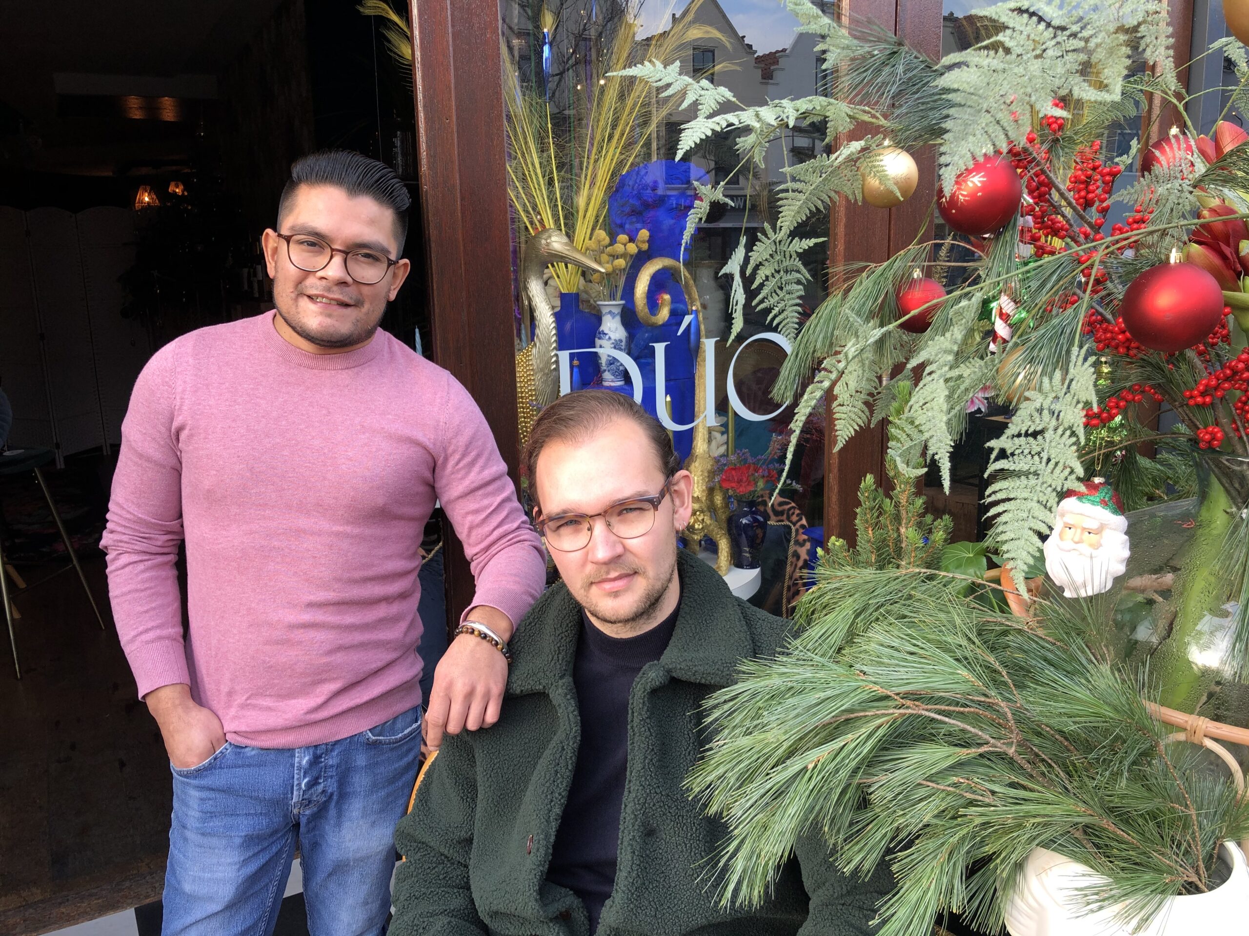 En hetzelfde geldt voor Thom en Deivis van Wijnbar Duo in Leiden. Ze hebben van hun restaurant een winkeltje gemaakt. “Met leuke lifestyle producten, kerstaccessoires en iedere zaterdag verse bloemen”, zegt Thom de Regt. Hij is verantwoordelijk voor de inrichting van het winkeltje in het restaurant. Zijn partner Deivis van Haasteren vult aan: “Ik heb het geluk dat mijn compagnon en vriend erg creatief is. Daardoor konden we het winkeltje openen in de hoop dat mensen langskomen om ons een hart onder de riem te steken.”