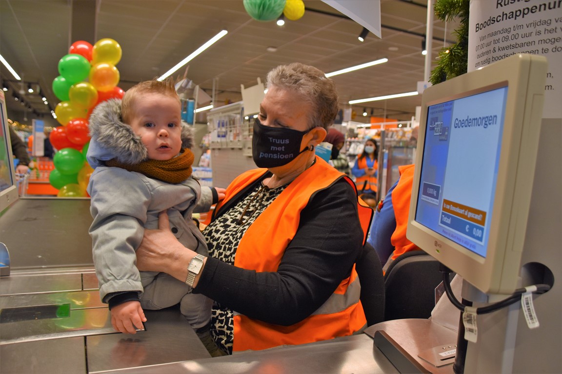 Truus van Deelen zat vrijdag voor het laatst achter de kassa bij supermarkt Albert Heijn aan het Kooiplein in Leiden. Na een caissière-carrière van 52 jaar ging Van Deelen met pensioen. Op haar laatste werkdag werd ze verrast door haar familie die eerst in muzikale optocht door de winkel liep om vervolgens nog één keer bij Truus langs de kassa te gaan.