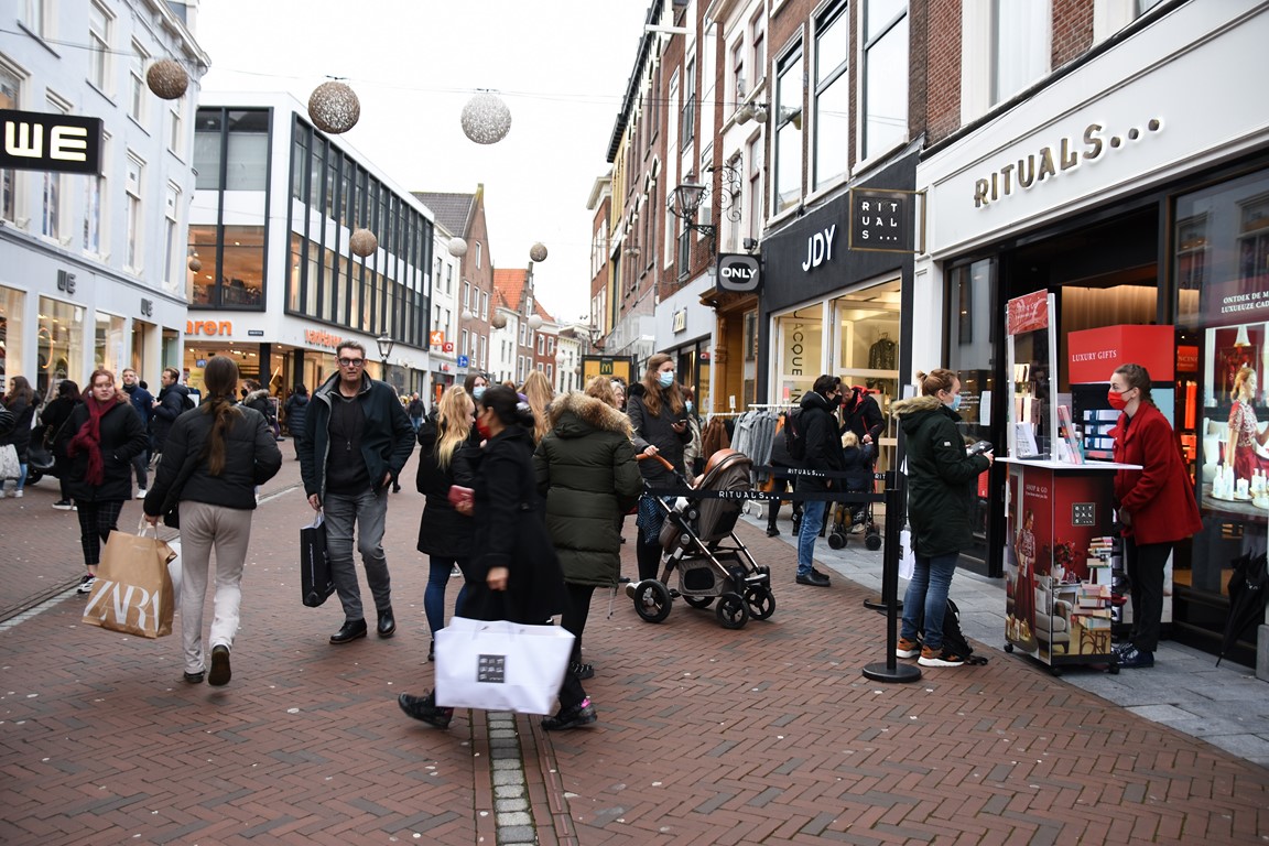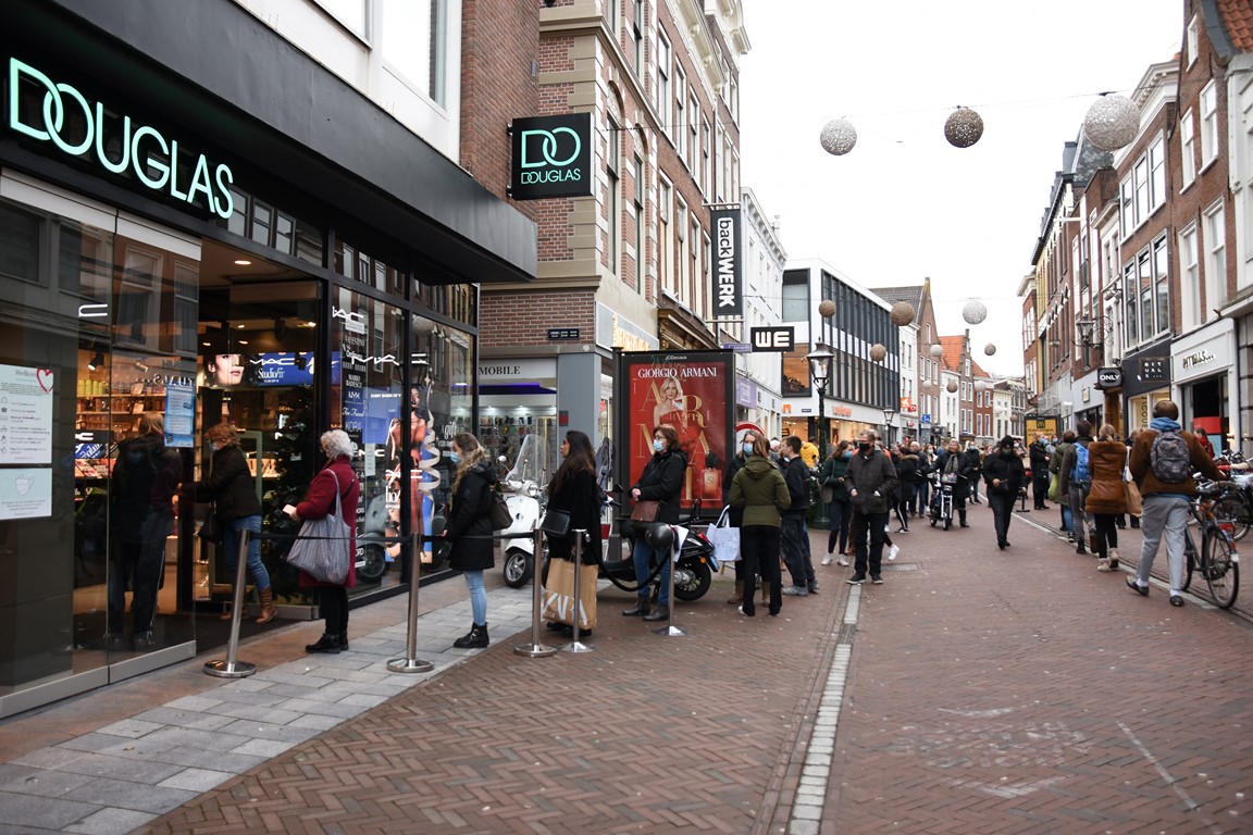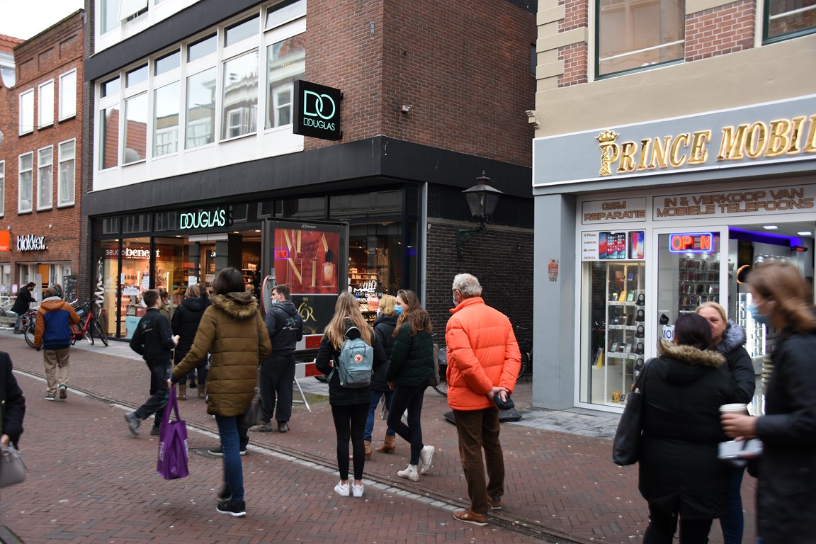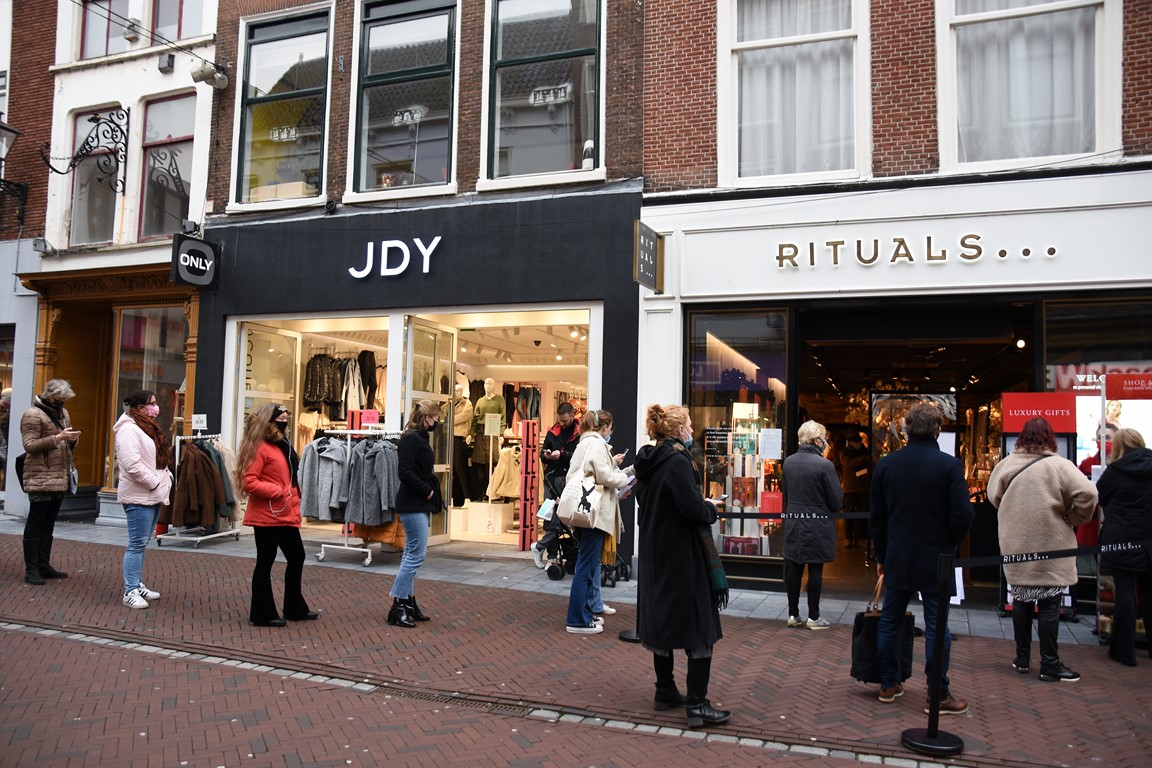 In de Leidse binnenstad is het maandagmiddag drukker dan normaal. Voor diverse winkels staan mensen in rijen te wachten om hun laatste inkopen te doen voordat een deel van de winkels vanaf vanavond gesloten wordt. Aan het einde van de ochtend werd duidelijk dat er maandagavond een harde lockdown bekendgemaakt gaat worden.