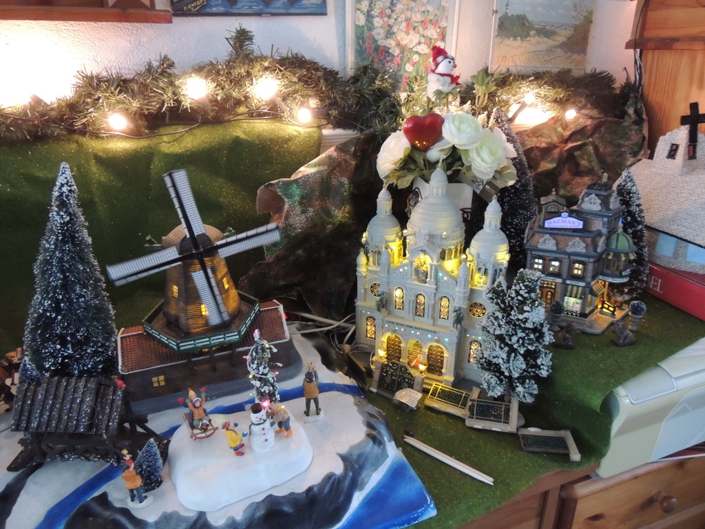 Al in augustus begon Piet met de bouw van zijn ‘dorp’, dat je door de omvang wellicht beter een stad kunt noemen. Je ziet er bekende gebouwen tussen zoals het stadhuis van Gouda en een Zaanse molen. Een andere molen, die lijkt op de houtzaagmolen van Noordman ‘de Heesterboom’ ,geeft een Leids tintje aan het geheel. Verder zijn het vooral huisjes uit Zwitserland, Italië en Duitsland die de kamer sieren.