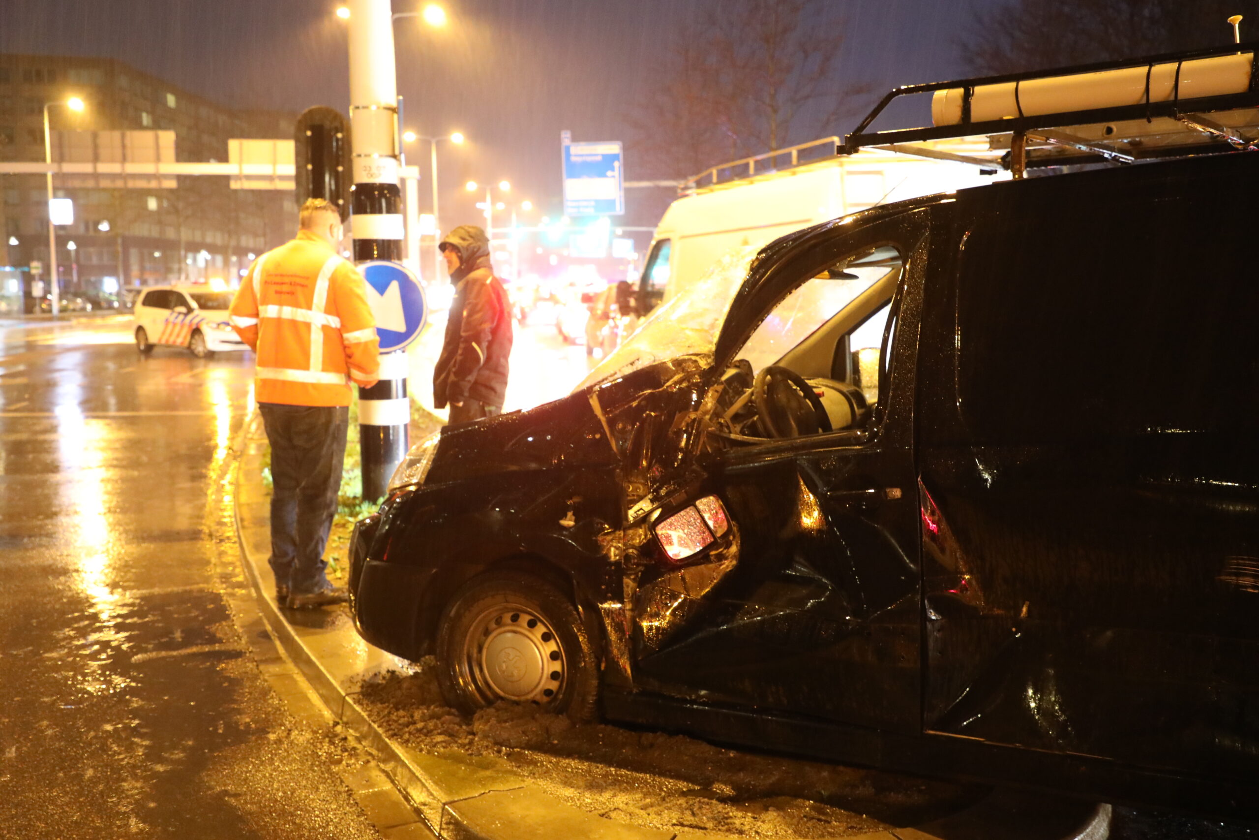 Het verkeer op de Willem de Zwijgerlaan is tijdens de ochtendspits volledig vastgelopen ten gevolge van twee aanrijdingen. Op de kruising met de Gooimeerlaan reed een shovel tegen een auto aan. De bestuurder van de bestelwagen raakte bij deze harde confrontatie niet gewond. Wel werd groot deel van kruising door de politie afgesloten met een flinke verkeerschaos tot gevolg.