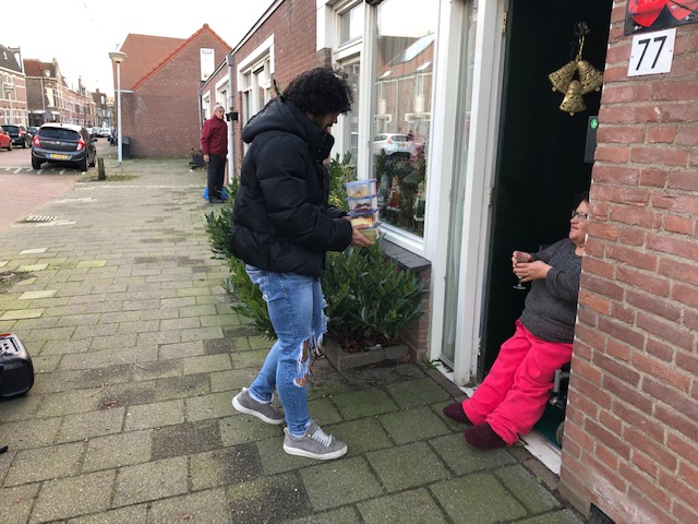 Het zijn de donkere dagen voor kerst. Deze dagen kunnen voor sommige Leidse ouderen extra donker zijn. De negentienjarige Jhelano zag dit probleem, hij zette vanuit Studio Moio een initiatief op om een aantal ouderen een lichtpuntje te brengen in deze donkere, en soms eenzame, tijd. Samen met de Leidse singer-songwriter Tessa Josephina ging hij met een bakfiets vol eten langs bij de ouderen.