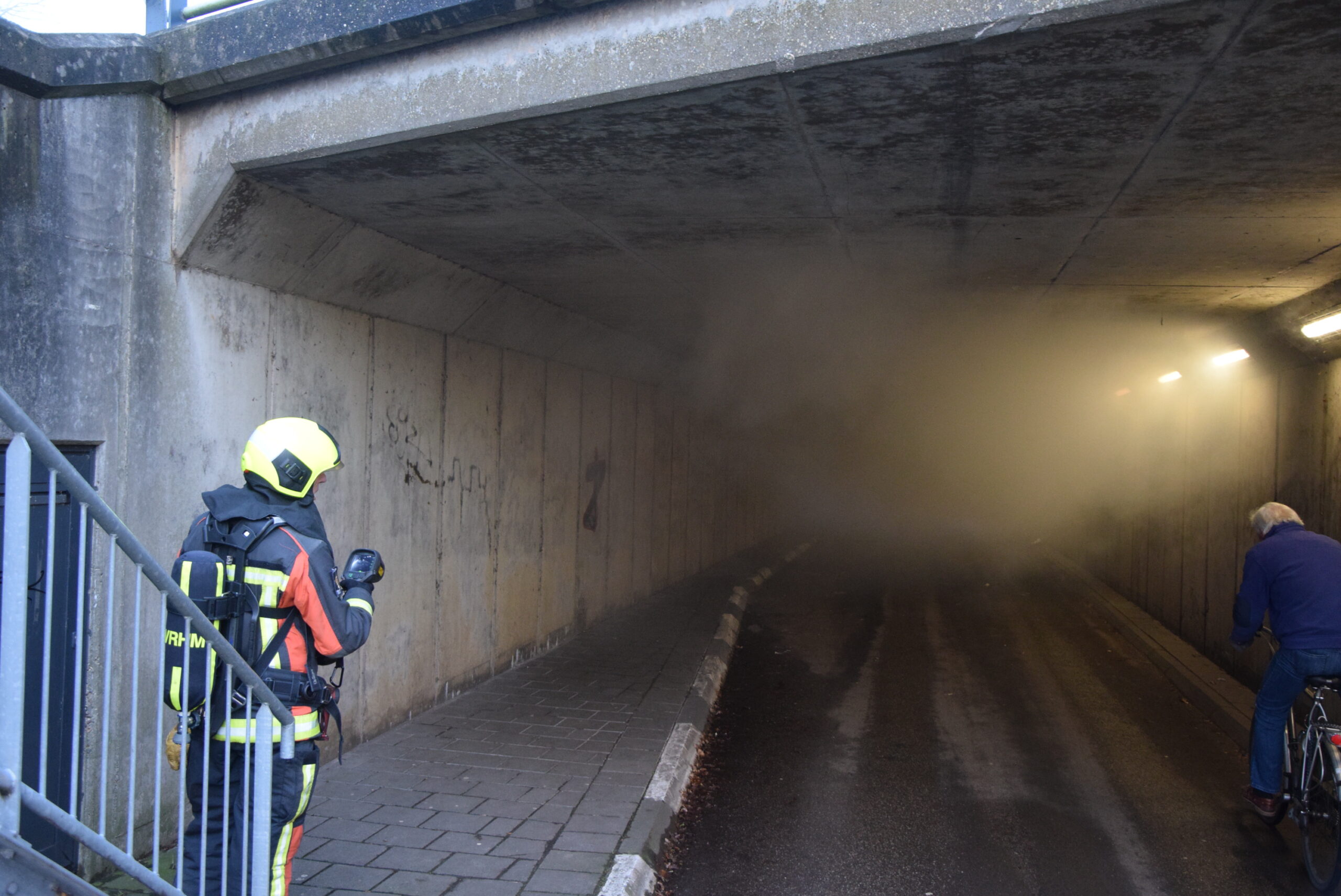 Rond 16.30 uur op oudjaarsmiddag trokken dikke rookpluimen over de N206 bij Zoeterwoude. De rook bleek afkomstig uit een tunnel onder de weg. De brandweer heeft met een warmtebeeldcamera een controle in de tunnel uitgevoerd. Terwijl een van de brandweerlieden de tunnel inliep, werd vanaf de andere kant door een groepje jongeren zwaar vuurwerk naar de brandweer gegooid.
