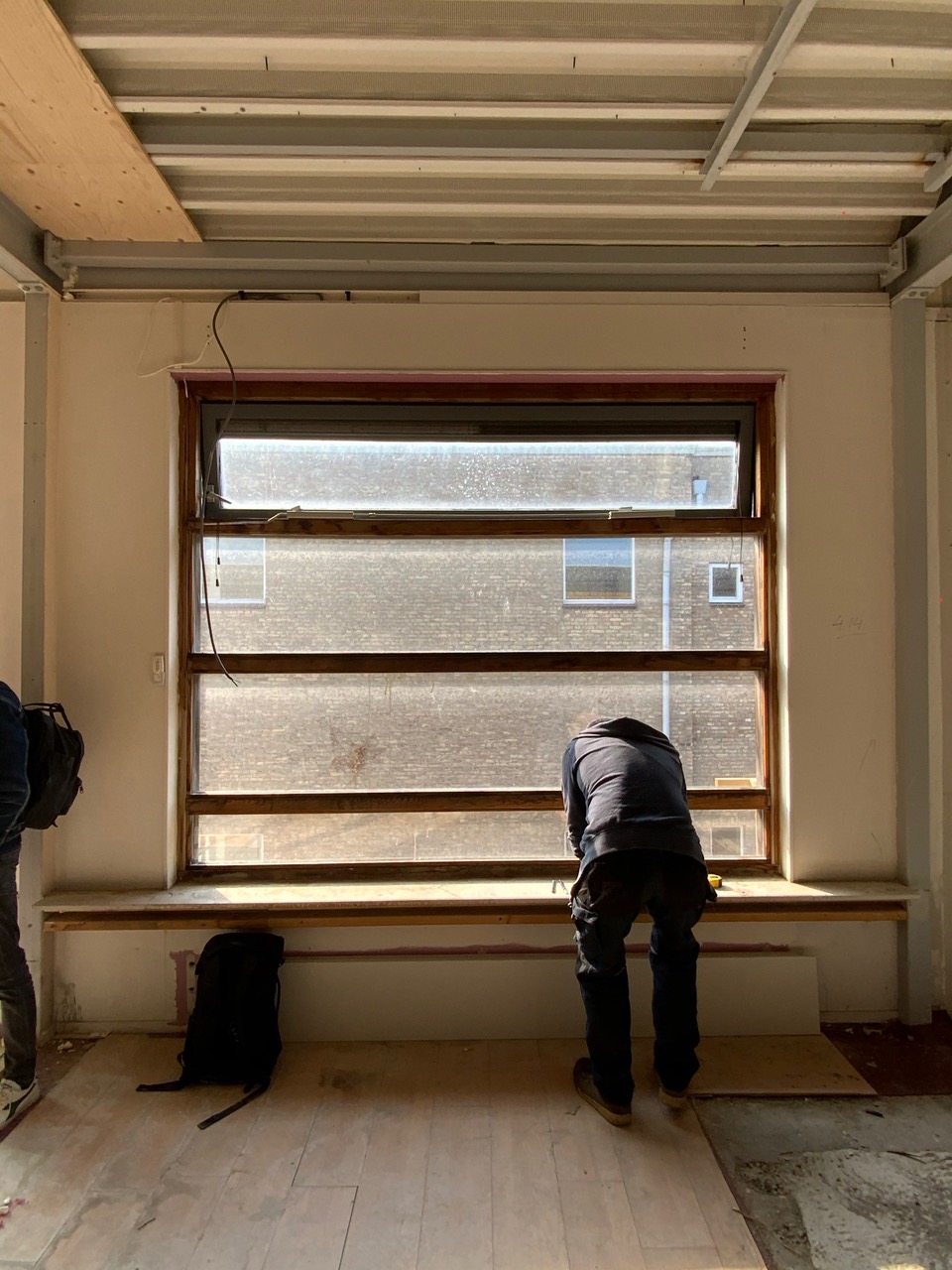 Gelukkig krijgt Lucas van alle kanten hulp aangeboden. “Dat is echt heel lief, familie en vrienden willen allemaal komen helpen.” Maar in tijden van corona kun je op vijftig vierkante meter niet met heel veel mensen tegelijk aan de slag. Lucas’ steun- en toeverlaat is zijn vader, een ervaren aannemer die in zijn vrije tijd graag een helpende hand biedt. “Hij is echt dé kennisbron”, vertelt Lucas in de kale ruimte waarin hij al helemaal voor zich ziet hoe hij straks lekker op de bank in de zon zit. “Ik leer elke dag iets nieuws van hem. Hij legt briefjes neer met instructies en ik kan hem altijd bellen.”