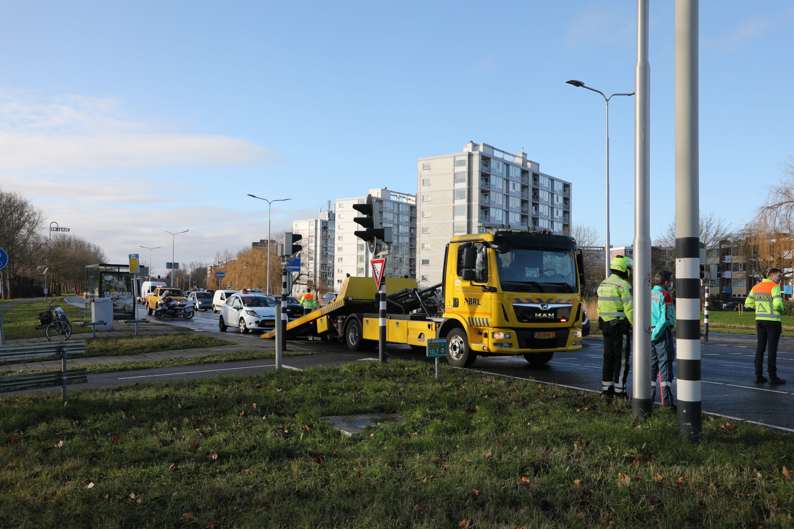 Een personenauto en een busje zijn dinsdagochtend op de Voorschoterweg ter hoogte van de kruising met de Rooseveltstraat met elkaar in botsing gekomen. Ambulancepersoneel heeft de bestuurster van de personenauto in de ambulance nagekeken. Het is niet bekend of zij vervoerd is naar het ziekenhuis.
