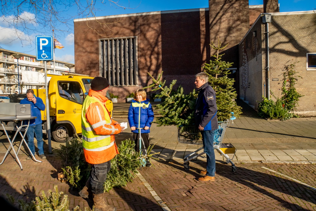 Volgens de ongeschreven wetten moet de kerstboom na Driekoningen het huis uit. De gemeente Leiderdorp gaf haar bewoners een weekje respijt. Gisteren werden op vijftien locaties in het dorp kerstbomen ingezameld.