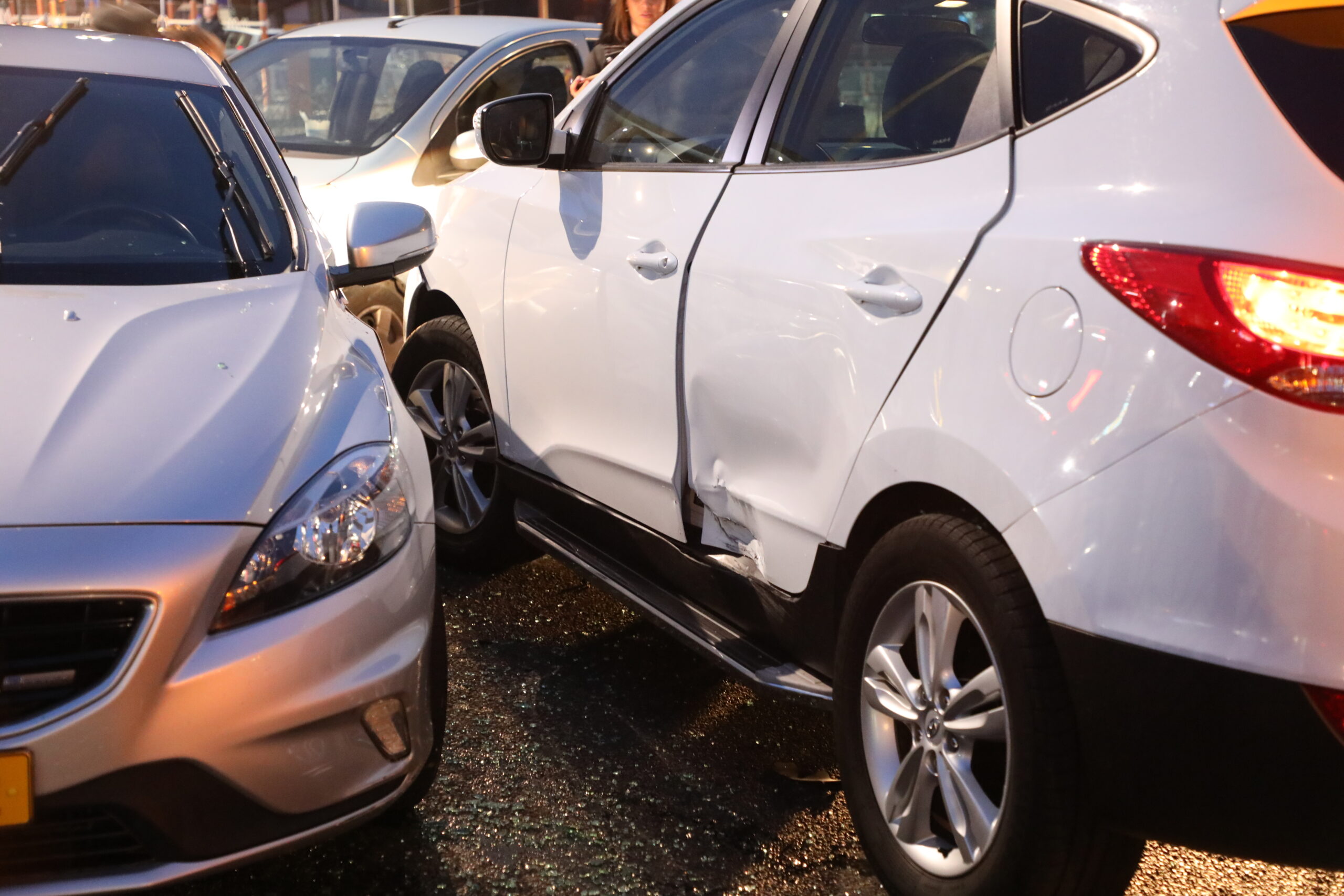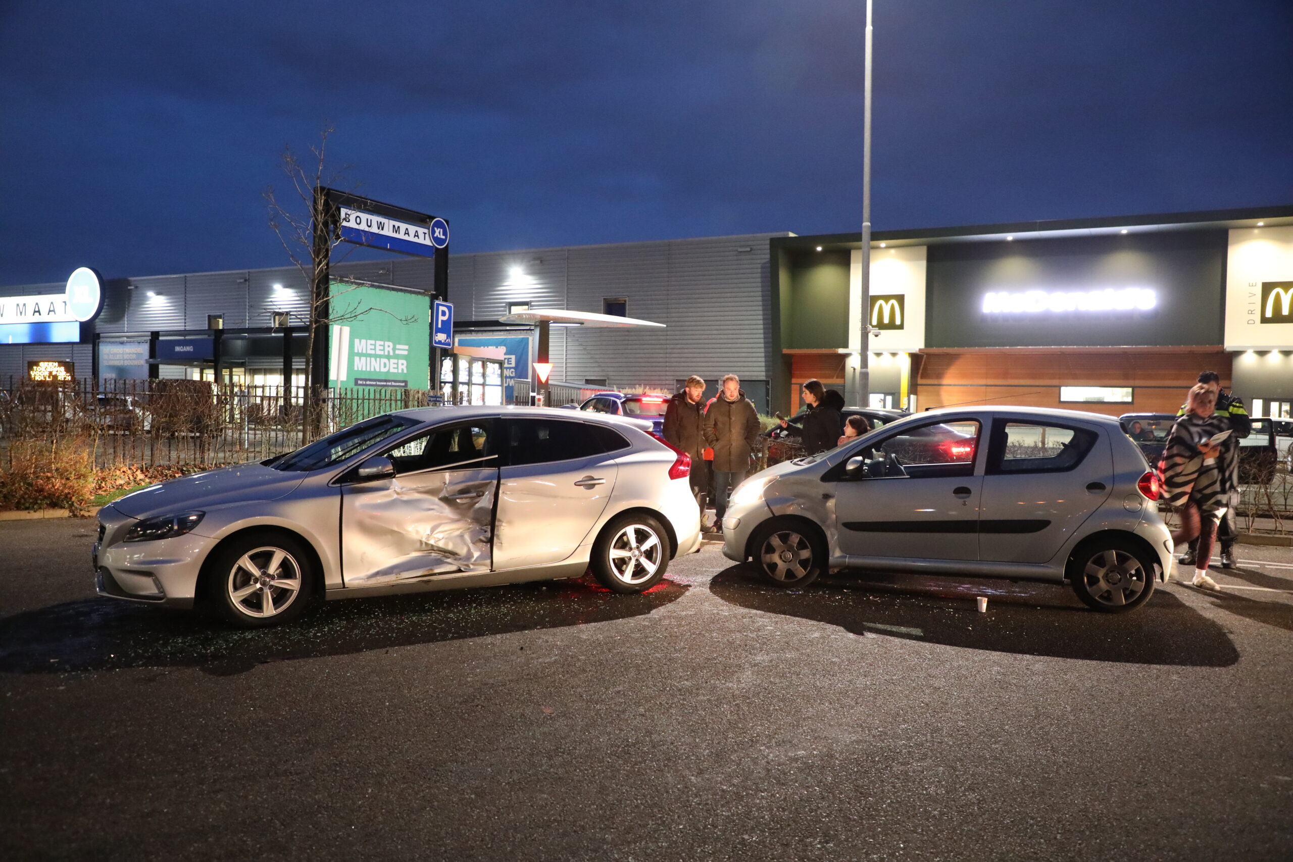 Op het terrein bij de McDonald’s vestiging aan de Rooseveltstraat in Leiden zijn rond 17.15 uur vier auto’s op elkaar gebotst. Daarbij raakte voor zover bekend niemand gewond. Twee van de vier voertuigen liepen flinke schade op.