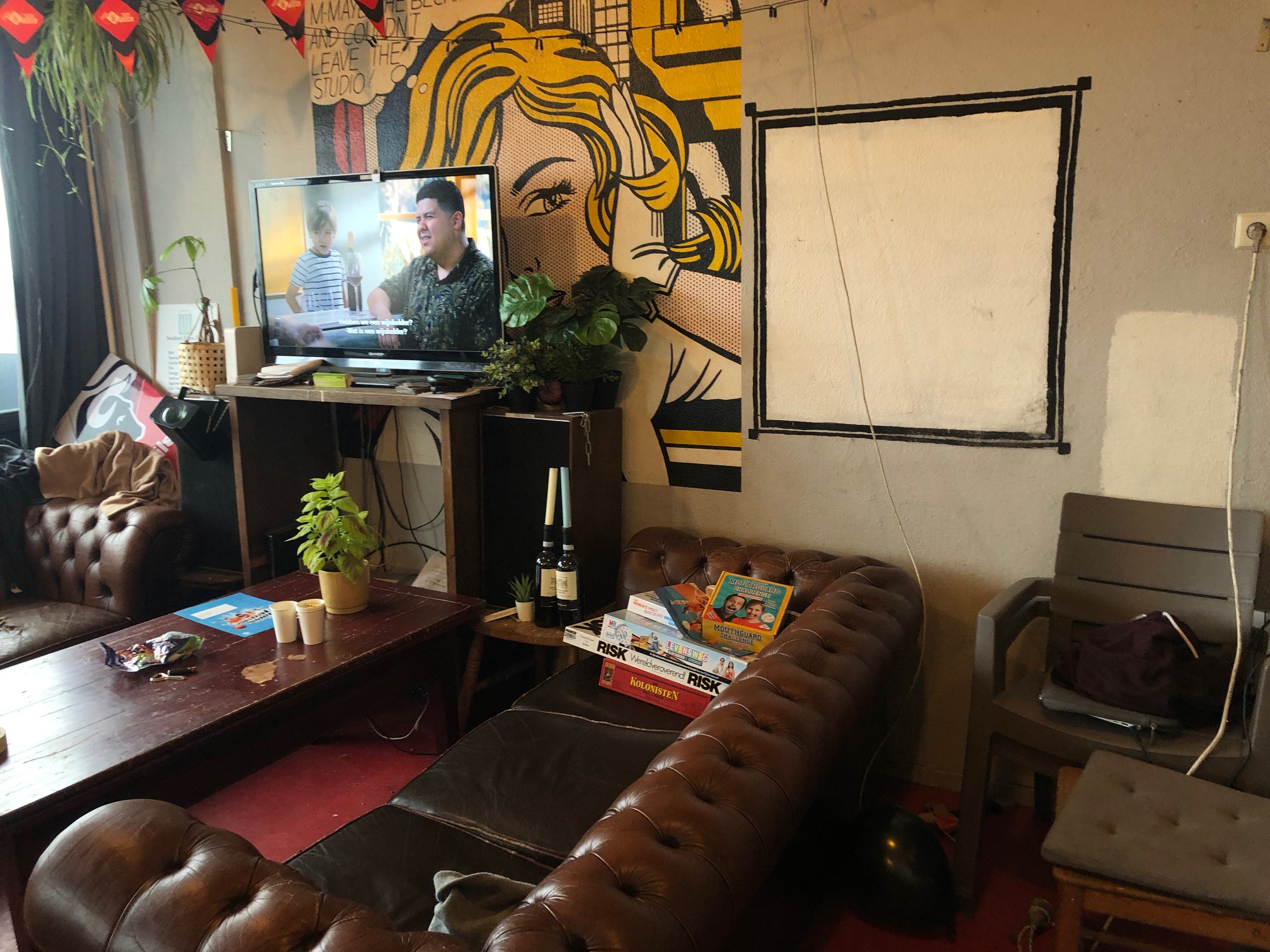 De gemeenschappelijke ruimte in het studentenhuis van Jeroen Salden.