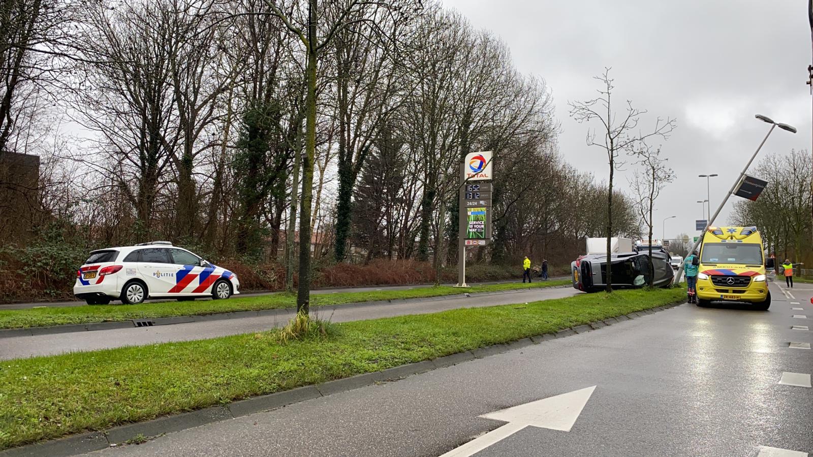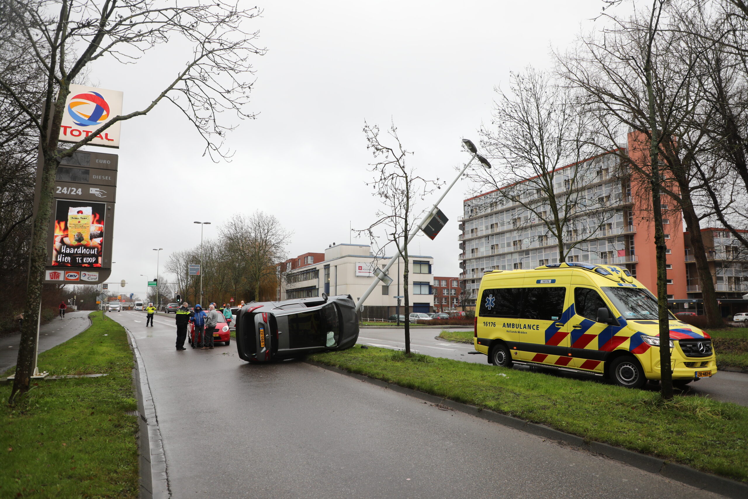Tenminste een van de betrokken automobilisten is gewond geraakt en per ambulance naar het ziekenhuis gebracht. Het gaat om de bestuurder van de auto die op z’n kant terecht kwam.