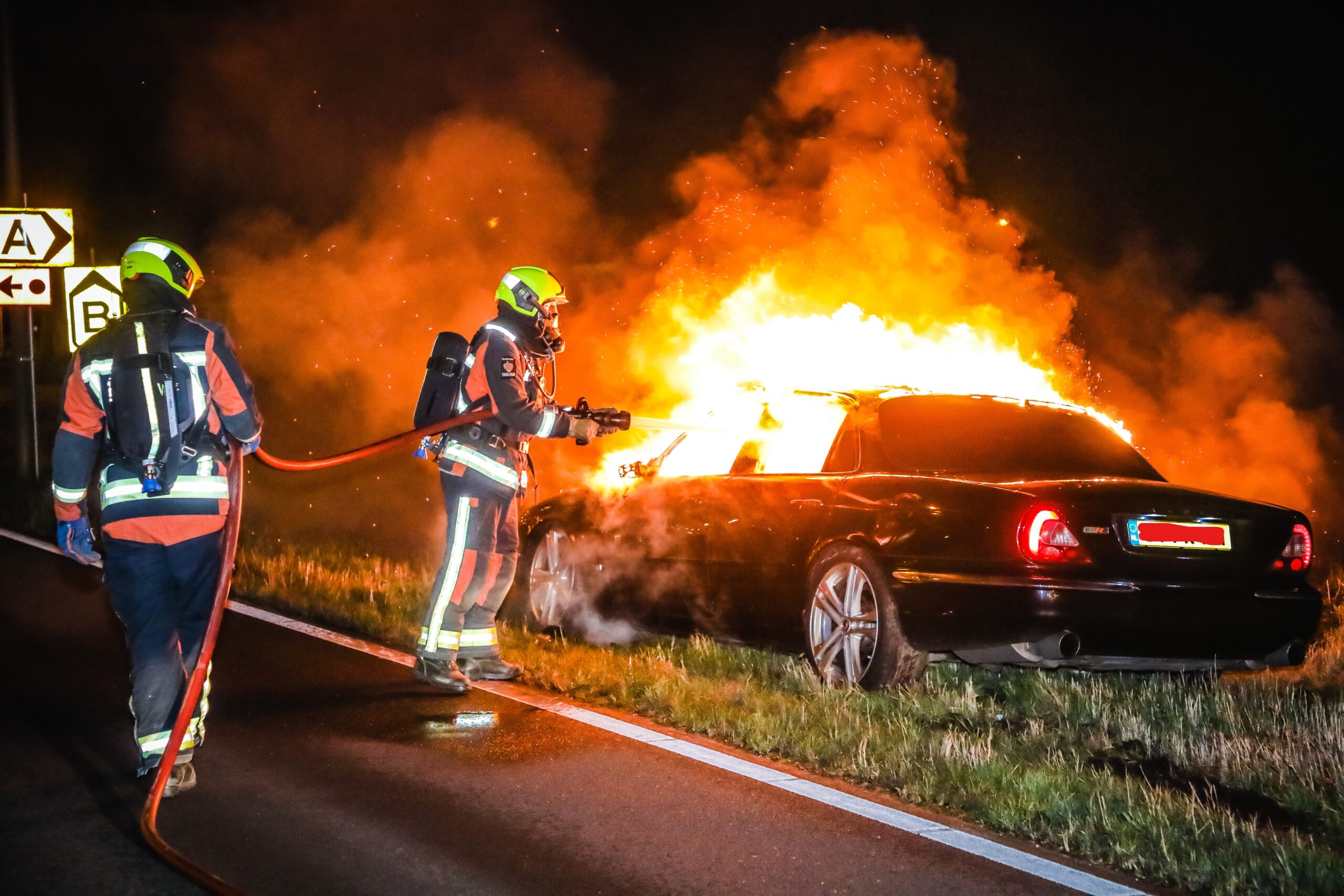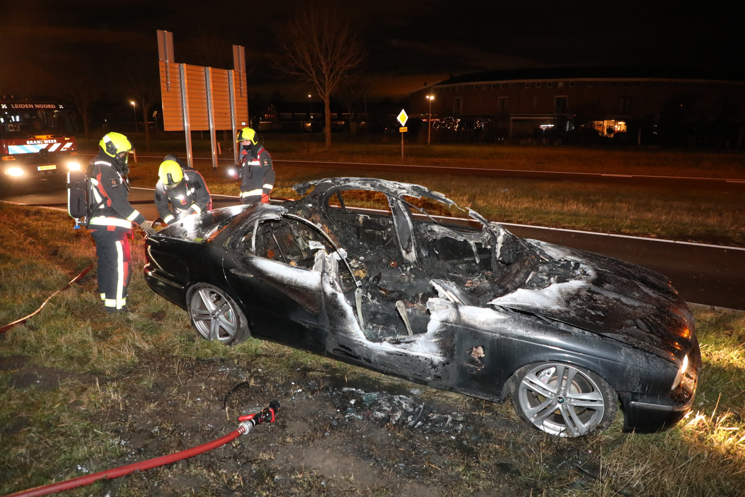 Op de N445 bij Leiderdorp is gisteravond een auto volledig uitgebrand. De brand ontstond tijdens het rijden waarna de bestuurder de auto langs de kant van de weg heeft geparkeerd.